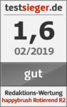 Wie bereits der Vorgänger ist auch die happybrush Rotierend R2 eine gute elektrische Zahnbürste. Sie liefert überzeugende Ergebnisse und bietet einige praktische Funktionen wie die verblassenden Bürsten und den Quadranten-Timer. In puncto Akkulaufzeit hat happybrush im Vergleich zur ursprünglichen Variante sogar noch einmal eine Schippe draufgelegt. In Sachen Verarbeitungsqualität und Optik macht die Zahnbürste eine sehr gute Figur. Hinzu kommen Verbesserungen wie der etwas nachgiebigere und schmalere Flexkopf. Damit hat uns die R2 insgesamt noch einmal besser gefallen als ihr Vorgängermodell. Wer eine rotierende Elektrozahnbürste sucht, macht mit der happybrush nichts falsch.