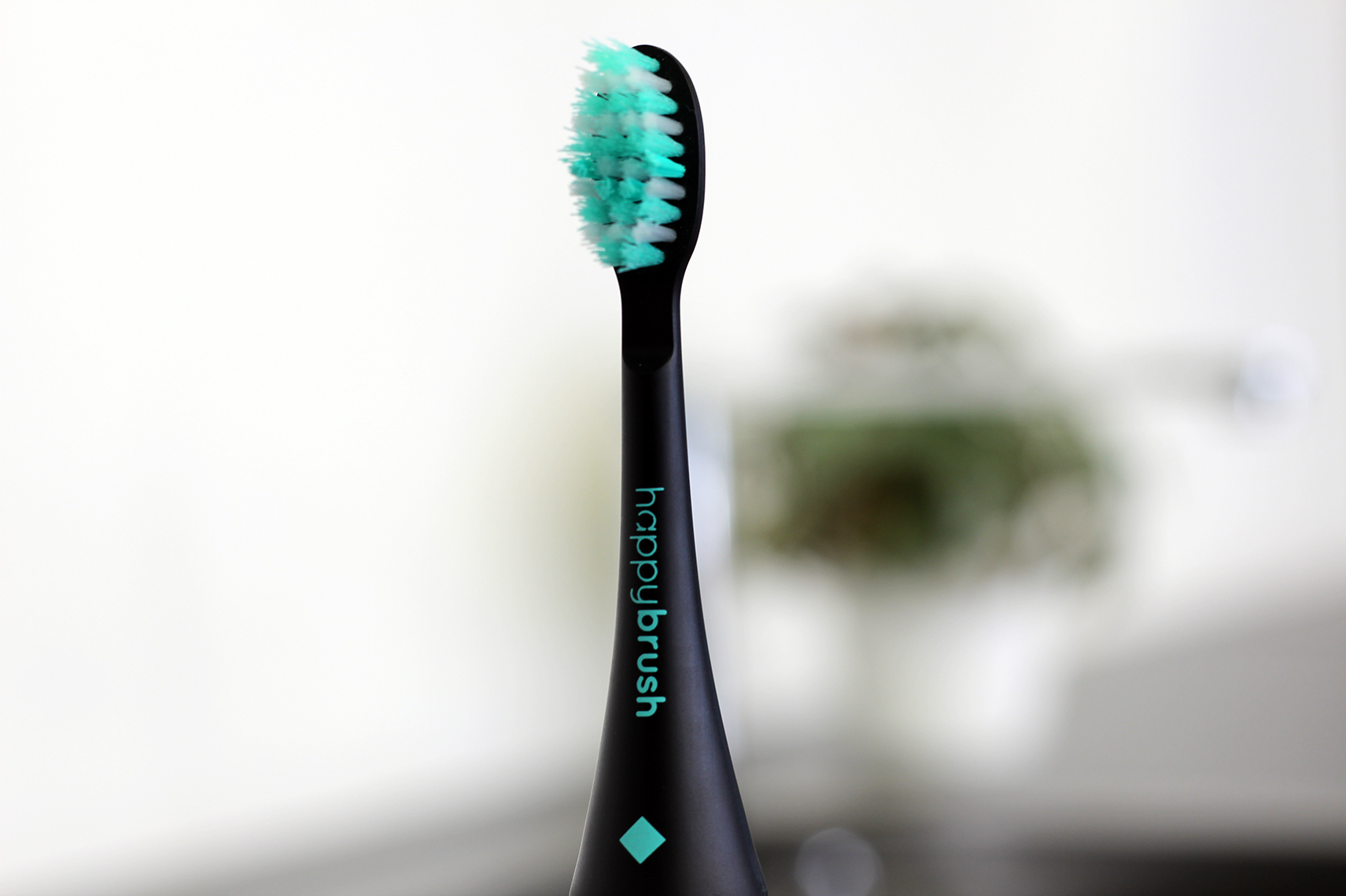 Beim Handteil und dem Aufsteckkopf kommt in erster Linie Kunststoff zum Einsatz. Die verwendeten Materialien machen jedoch einen robusten Gesamteindruck. Selbst Stürze auf den Badezimmerboden können der happybrush nichts anhaben. Das Gehäuse besteht aus einem Guss, unschöne Spaltmaße, in denen sich Staub oder Zahnpastareste ansammeln könnten, sind also nicht vorhanden. Ein sehr großes Spaltmaß entsteht jedoch am Verbindungsstück zwischen Motoreinheit und Bürstenkopf. Die Bürste sitzt zwar fest, allerdings lässt sich der entstehende Spalt nicht komplett schließen.