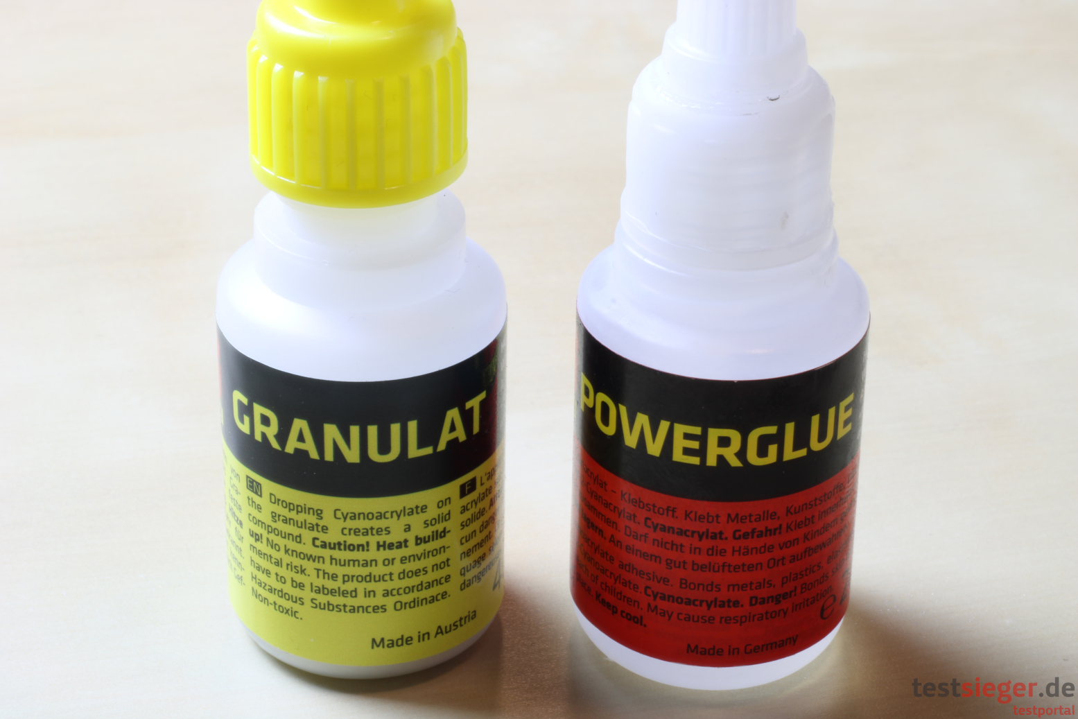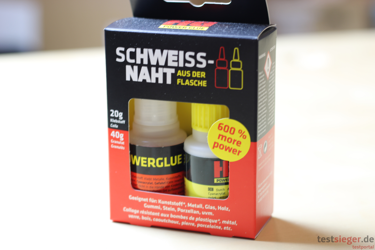 In der Verpackung der Schweißnaht aus der Flasche befinden sich zwei kleine Fläschchen – eine enthält den Kleber, die andere das Granulat. In der günstigsten Variante erhält der Kunde 5 Gramm Klebstoff und 20 Gramm Granulat. In dem von uns getesteten Vorteilspack ist jeweils die vierfache Menge enthalten. Der Preis ist im Vergleich zum knapp 17 Euro teuren Basis-Set jedoch gerade einmal 8 Euro teurer. Wir raten also definitiv zu letzterer Variante. Außerdem ist noch ein Set mit einem Primer für schwer zu verklebende Kunststoffe erhältlich.