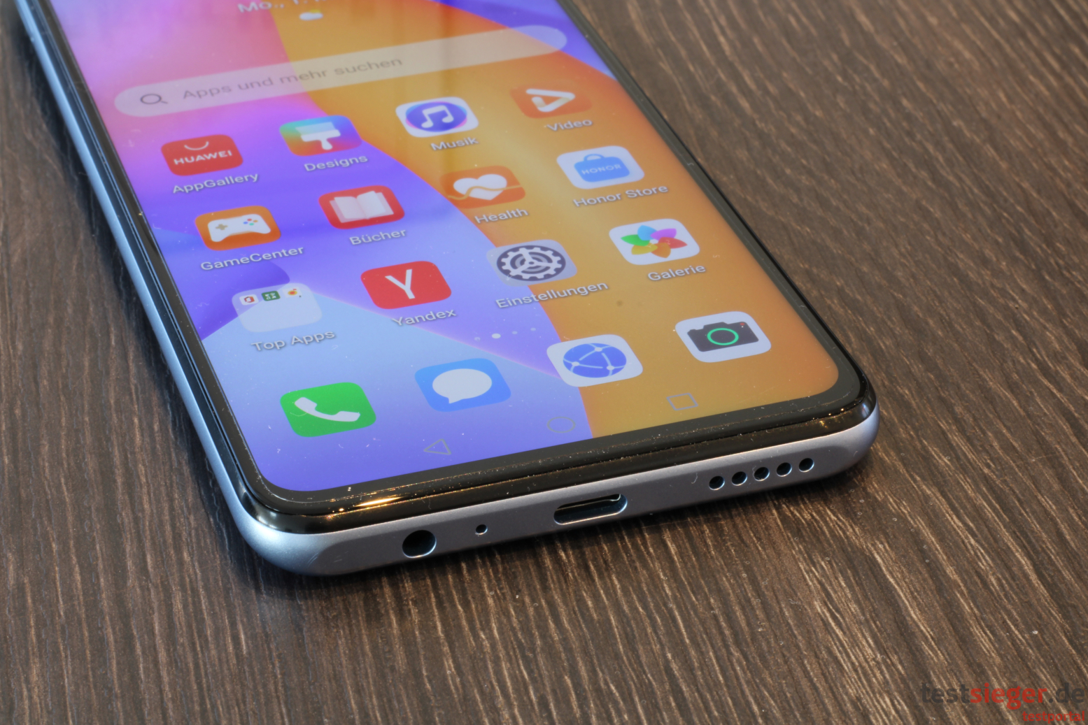 Erfreulicherweise hält Honor noch am 3,5-Millimeter-Klinkenstecker-Anschluss fest. Dieser befindet sich genau wie der Ladeanschluss und der Lautsprecher auf der Unterseite. An der Drahtlos-Front ist Bluetooth in der Version 5.1 und NFC integriert. Die Mono-Lautsprecher verrichten insgesamt einen guten Job, Wunder sollte der Nutzer aber natürlich nicht erwarten.