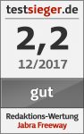 Die Freisprechanlage mit Sprachsteuerung ist eine solide Ergänzung für Autos, die diese nicht fest integriert haben. Alle nötigen Funktionen sind vorhanden und die Inbetriebnahme geht sehr einfach von der Hand. Allerdings sehen wir noch an einigen Stellen Verbesserungsbedarf. Gerade die Sprachsteuerung funktioniert noch nicht reibungslos. Außerdem hätten wir uns gewünscht, dass die aktuellste Firmware-Version bereits installiert ist. Im Werkszustand weißt die Jabra Freeway erhebliche Mängel auf, die sich durch ein einfaches Update allerdings beheben lassen.