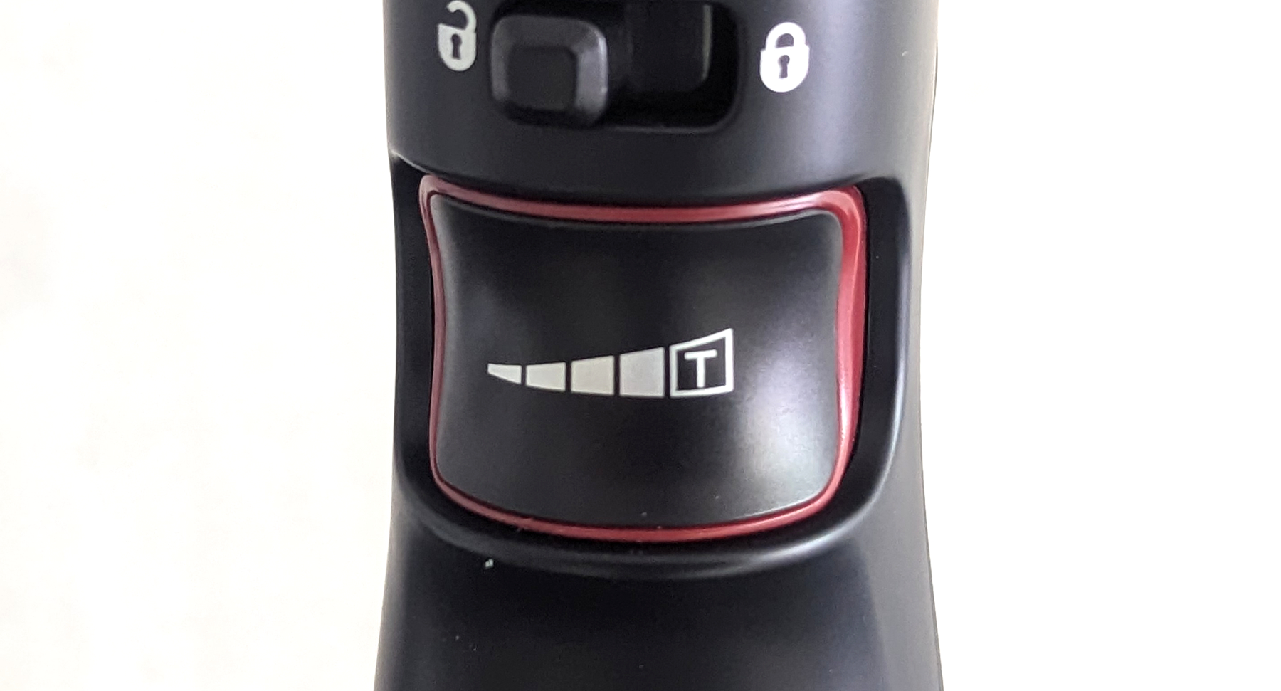 Die Bedienung des Stabmixers ist simpel gehalten. Ein Druck auf die Leistungstaste mit dem Daumen genügt, um das Gerät zu starten. Dabei reguliert der Druck auf die Taste gleichzeitig die Geschwindigkeit und die Kraft des Mixers. Die Anzeige der Leistungsstufen erfolgt intuitiv über ein Display oberhalb des Mixers, das die Leistung in fünf Schritten anzeigt. Dies ermöglicht uns eine präzise Kontrolle über das Tempo des Mixvorgangs – sehr gut. Für die maximale Leistung kann der Turbo-Modus durch einen vollen Druck auf die Taste aktiviert werden. Etwas schade ist die fehlende Einrastfunktion bei den Leistungsstufen, da sie für etwas mehr Komfort bei der Handhabung gesorgt hätte. Aus unserer Sicht wurde sie aus Sicherheitsaspekten weggelassen, um einen Weiterbetrieb bei losgelöster Hand zu verhindern.