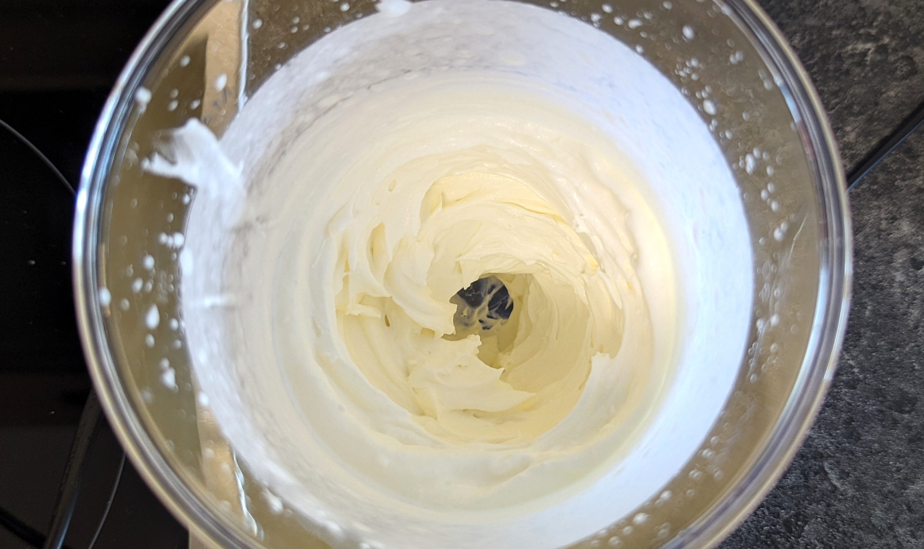 Aufnahme von oben auf das Ergebnis der aufgeschlagenen Sahne
