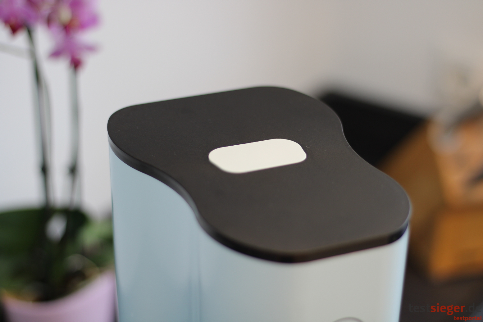 Zum Aufsprudeln verfügt der Joy Fashion über eine einzige Taste auf der Oberseite. Diese ist ausreichend groß dimensioniert, damit der Nutzer sie im Zweifel auch mit vier Fingern betätigen kann. Insgesamt ist der Knopf zwar etwas schwergängig, lässt sich jedoch insgesamt problemlos betätigen.