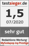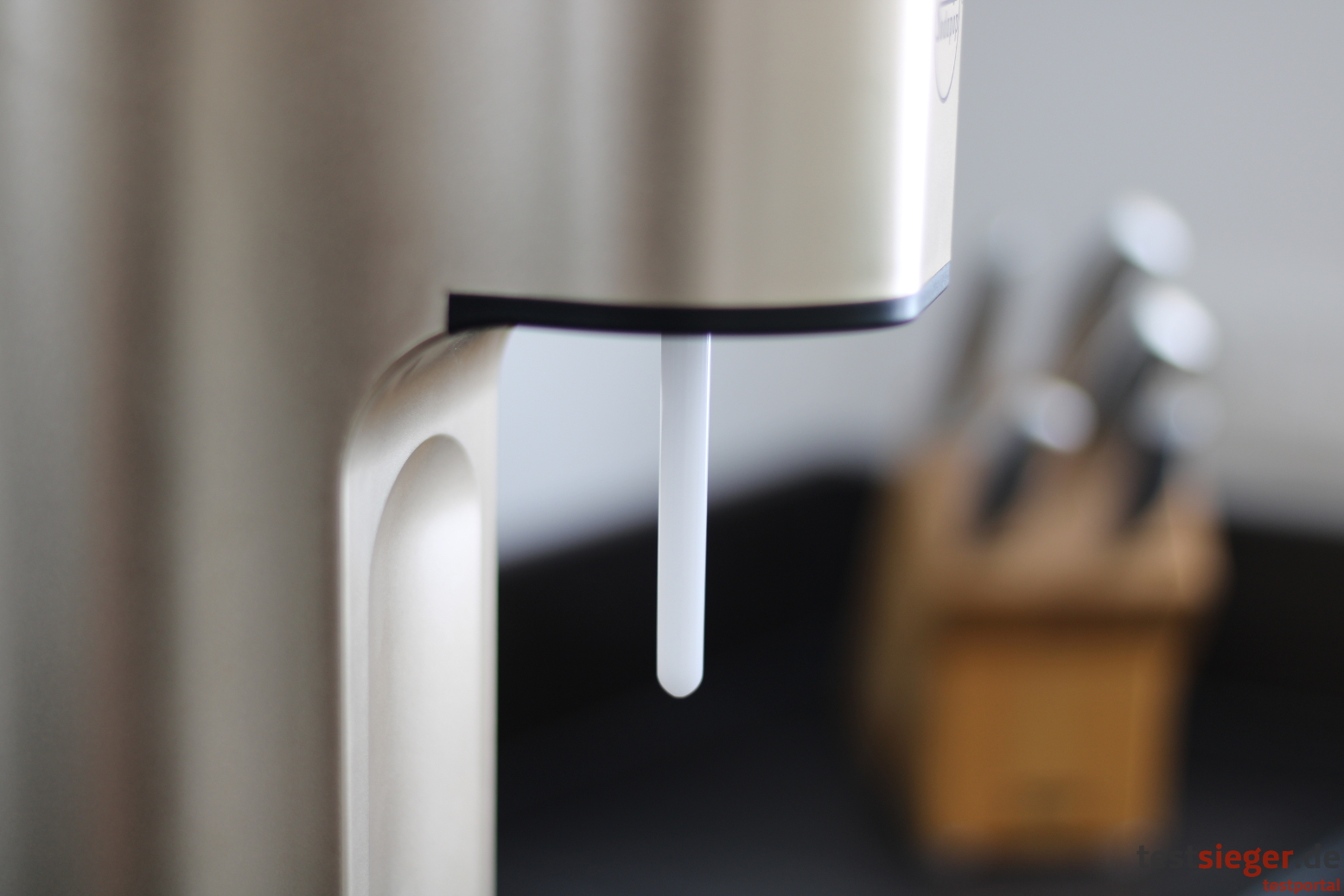 Update: MySodapop hat uns eine neuere Version des Prestige zukommen lassen. Hier lässt sich die Taste deutlich angenehmer bedienen, weshalb das Gerät eine bessere Wertung im Teilbereich Bedienung und Handhabung erhält und sich auch Gesamtnote ändert.