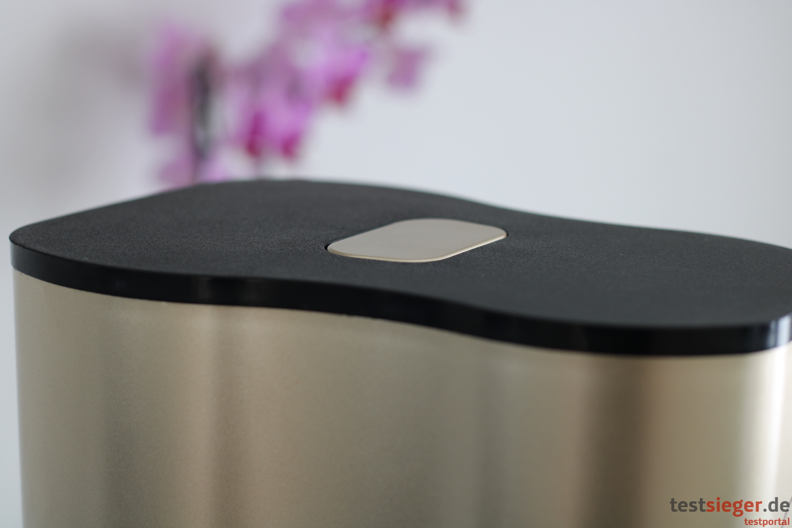 Zum Aufsprudeln verfügt der Joy Prestige über eine einzige Taste auf der Oberseite. Diese ist ausreichend groß dimensioniert, damit der Nutzer sie im Zweifel auch mit vier Fingern betätigen kann. Der Knopf ist zwar etwas schwergängig, das Betätigen bereitet insgesamt jedoch keine Probleme.