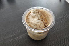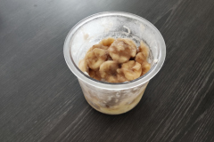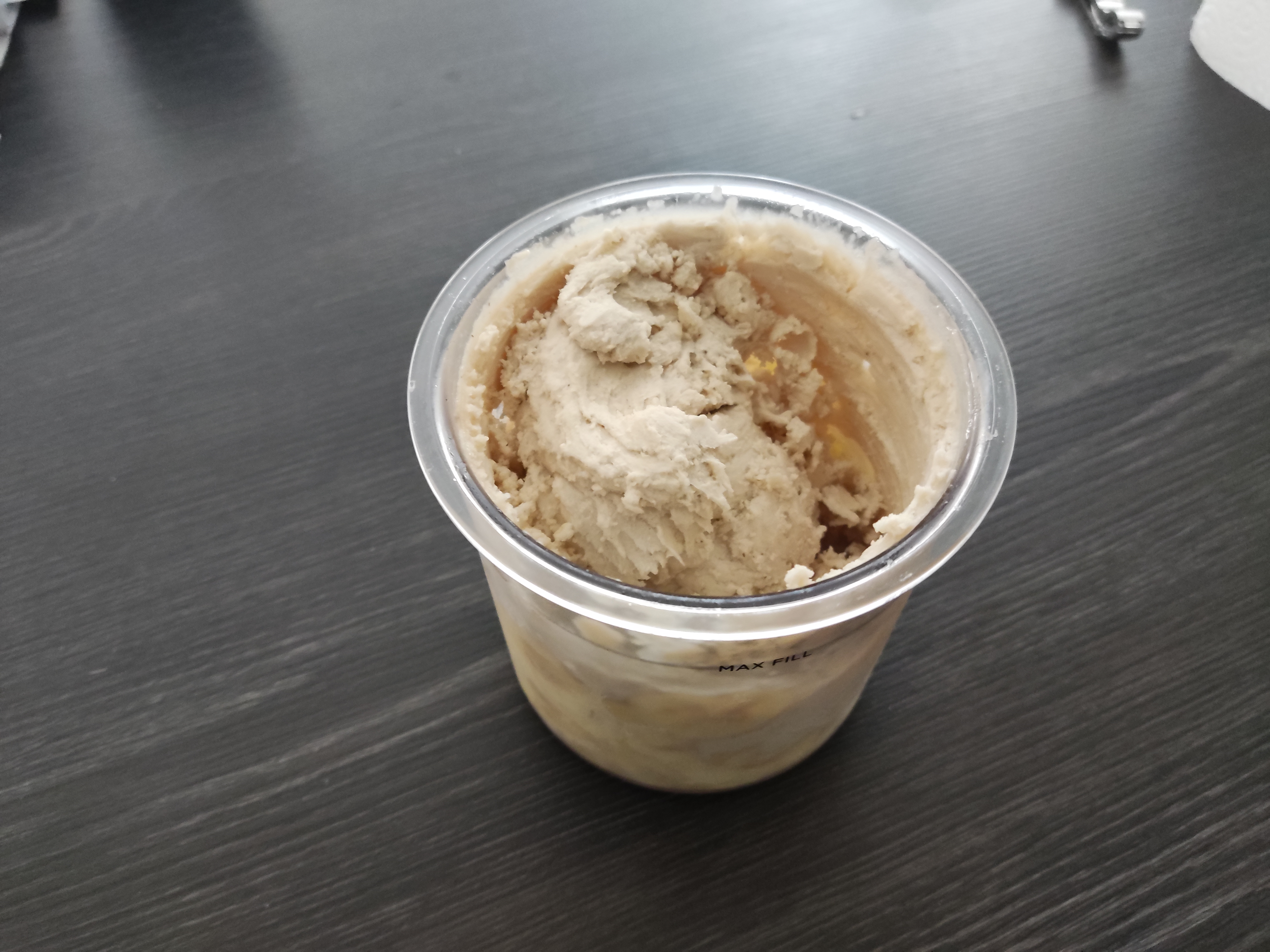 Unser Highlight ist jedoch das Bananensorbet. Hier geben wir ausschließlich Fruchtstücke in den Behälter und zermatschen diese. Nach 24 Stunden erhalten wir ein cremiges Bananeneis ohne ungesunde Zutaten. Dieses eignet sich beispielsweise hervorragend für Kindergeburtstage. Aus unserer Sicht kann sich allein dafür schon die Anschaffung der Maschine lohnen. Allerdings zeigt sich hier besonders deutlich, dass nicht die komplette Masse verarbeitet wird, an den Rändern bleiben noch deutlich sichtbare Bananenstücke zurück. So besteht jedoch keine Gefahr, dass der Rührarm den Kunststoff-Behälter beschädigt.