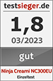 Die Ninja Creami Eismaschine NC300EU hat viele Stärken und ein paar kleinere Schwächen. Das Design und die Verarbeitung gefallen uns insgesamt gut, auch wenn es bei uns beim Herausnehmen des Behälters etwas hakt. Die Bedienung geht einfach von der Hand und ist intelligent und intuitiv gestaltet. Praktischerweise befinden sich direkt 3 Behälter im Lieferumfang, sodass sich auch größere Mengen an Eis herstellen lassen. Abgesehen von der langen Gefrierzeit, klappt die Zubereitung auch sehr zügig und ohne Probleme. Die Ergebnisse sind ebenfalls ordentlich, teilweise benötigen die Kreationen die Re-Spin-Funktion, dann haben wir bei der Konsistenz jedoch keine gravierenden Ausreißer nach unten. Unser Highlight ist das Bananensorbet ohne zusätzliche Zutaten, das nicht nur cremig ist, sondern auch noch gut schmeckt. Nachteile sind die hohe Lautstärke bei der Zubereitung und die komplizierte Reinigung. Wen das nicht stört, dem können wir die Creami Eismaschine empfehlen.