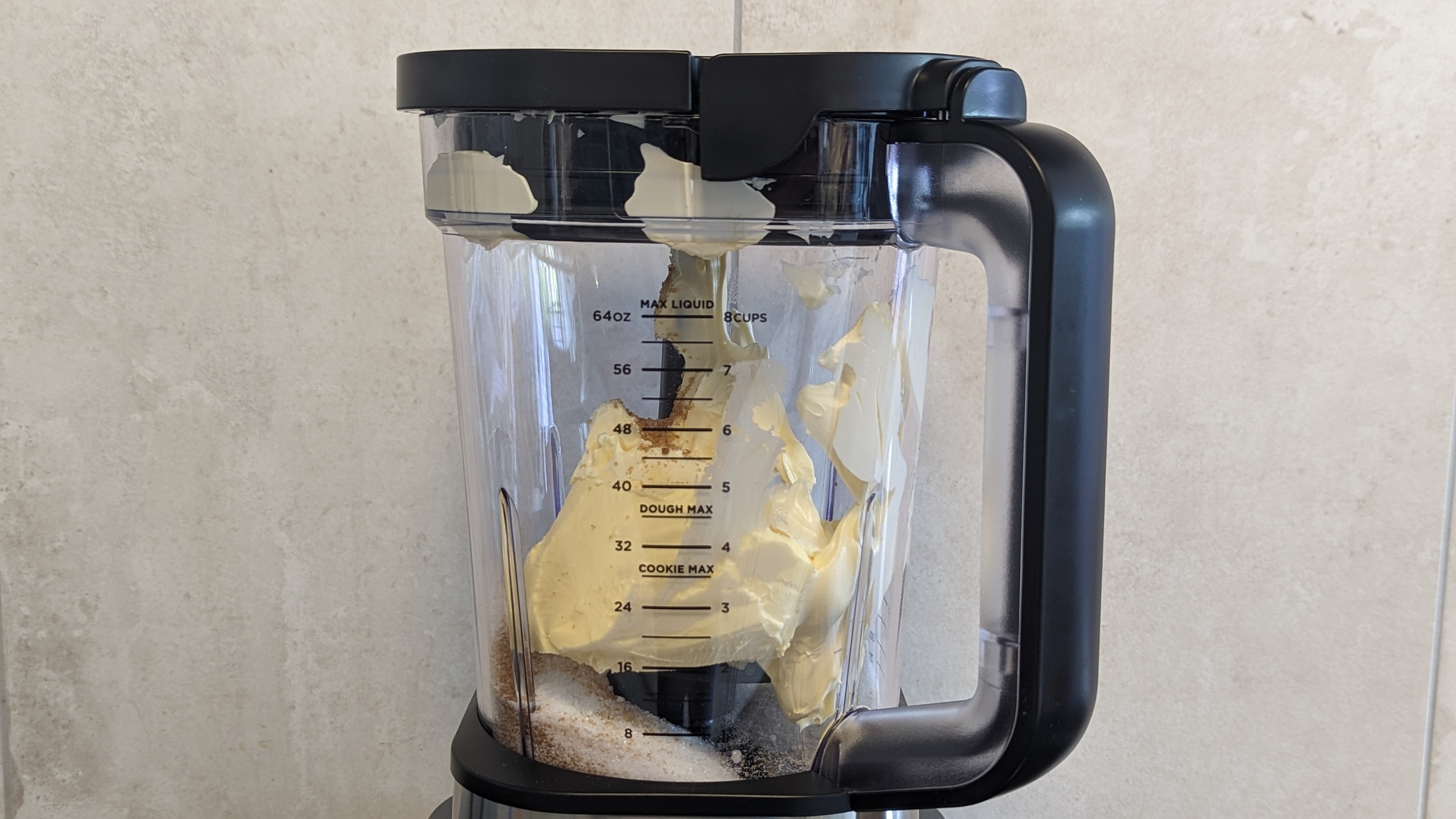 Zuletzt stellen wir einen Kuchen-Teig im manuellen Modus her. Hierzu müssen wir den Messer-Aufsatz gegen den Rührer tauschen. Im nächsten Schritt geben wir Eier, Mehl, Zucker, Backpulver und Joghurt in den Power-Nutri-Jug (Fassungsvermögen (2,1 Liter). Nach etwa 2 Minuten erhalten wir einem cremigen Kuchenteig, der fast keine Wünsche offen lässt. Lediglich vereinzelt finden wir nicht verarbeitete Butter-Stückchen. Insgesamt sind die Ergebnisse des Standmixers gut. Wir stellen kaum Kritikpunkte fest.