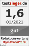 Dass sich das Oppo Reno4 Pro 5G zwischen der Mittel- und Oberklasse bewegt, ist auch in der Praxis deutlich spürbar. In puncto Verarbeitung und Design spielt das Handy ganz klar vorne mit. Das Display bewegt sich in ähnlichen Regionen. Es löst zwar „nur“ in Full HD auf, punktet jedoch durch eine extrem hohe Helligkeit und einen ausgezeichneten Kontrast. Auch die Akkuleistung überzeugt uns durch die Bank, ein echtes Highlight ist das schnelle Laden. Die Kamera reiht sich in der oberen Mittelklasse ein. Das schafft die Leistungsfähigkeit nicht ganz. Alltägliche Aufgaben meistert das Smartphone zwar problemlos, hardware-hungrige Spiele laufen jedoch nur mit Einschränkungen. Insgesamt schnürt Oppo mit dem Reno4 Pro ein überzeugendes Gesamtpaket, das wir empfehlen können.