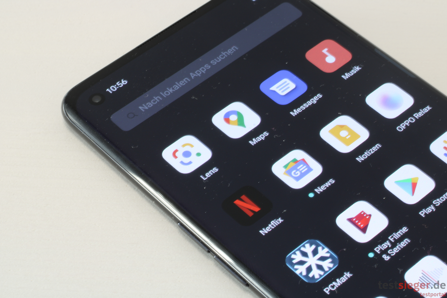 Als Betriebssystem kommt Android in der Version 10 zum Einsatz. Zum Testzeitpunkt liegt noch kein Update auf die aktuelle Version 11 vor. Zudem verwendet Oppo die hauseigene Benutzeroberfläche Oxygen OS. Diese passt das Design der klassischen Android-Benutzeroberfläche dezent an, wer jedoch schon einmal ein Smartphone mit dem Google-Betriebssystem verwendet hat, kommt sofort zurecht. Neben dem Schnellwahlmenü an der Oberseite kann der Nutzer auf Wunsch noch eine Seitenleiste per Wischgeste zuschalten. Diese ist standardmäßig beispielsweise mit der Screenshot-Funktion belegt, lässt sich jedoch auch frei konfigurieren. Ärgerlich: Ab Werk ist viel Drittanbieter-Software wie die Facebook- oder Netflix-App installiert. Obwohl es sich hierbei um häufig verwendete Anwendungen handelt, sollte die Wahl dennoch beim Nutzer liegen. Immerhin lassen sich die meisten Apps deinstallieren, bei Netflix besteht diese Option jedoch nicht.