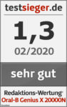 Dass es sich bei der Oral B Genius X um ein Luxusprodukt handelt, merkt man ihr an jeder Ecke an. Die Verarbeitung ist hochwertig, das Design schlicht und edel. Auch der Lieferumfang lässt bis auf weitere Bürstenköpfe keine Wünsche offen. Die Bedienung am Gerät selbst oder per App ist intuitiv und geht einfach von der Hand. Ein echtes Highlight sind die verschiedenen Sensoren zur Lagebestimmung und zur Kontrolle des Anpressdrucks. Sie sind nicht nur Spielerei, sondern verbessern das Putzerlebnis merklich. Ob der hohe Preis dafür gerechtfertigt ist, muss jeder selbst entscheiden. Wir können jedoch eine klare Kaufempfehlung abgeben.