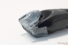 Die verschiedenen Komponenten des Gehäuses sind sauber miteinander verbunden, die entstehenden Spaltmaße bewegen sich in einem vertretbaren Rahmen. Im Vergleich zum Rasierer fällt der Kammaufsatz etwas ab. Gerade die Zinken geben sehr leicht nach. Das ist einem angenehmeren Rasiergefühl zuträglich, wir würden jedoch nicht die Hand dafür ins Feuer legen, dass sie einmal abbrechen.