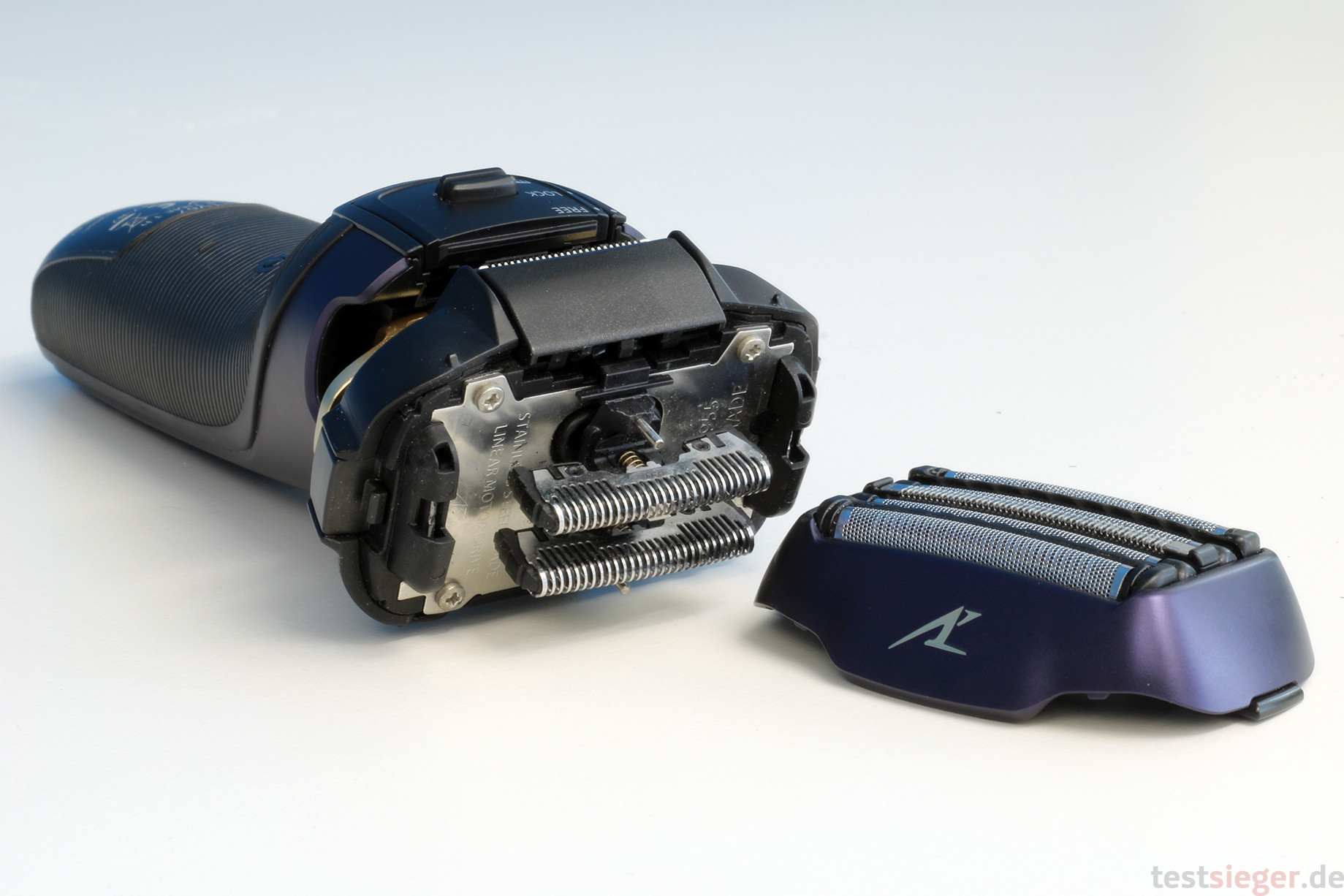 Insgesamt ist an der Verarbeitung des Geräts nichts auszusetzen. Das Gehäuse besteht aus robusten, hochwertigen Kunststoff. Die einzelnen Gerätekomponenten sind fest und sauber miteinander verbunden. Wir können keine größeren Spaltmaße oder Kanten entdecken, in denen sich dauerhaft Schmutz festsetzen kann. Einen ersten Härtetest – den Fall aus einem Meter Höhe auf Badezimmerfließen – übersteht der Rasierer mit Bravour. Der Scherkopf löst sich zwar erwartungsgemäß beim Aufprall vom Gerät. Er lässt sich im Anschluss aber einfach wieder arretieren und nimmt keinen sichtbaren und funktionellen Schaden. In dieser Kategorie überzeugt der Panasonic komplett.