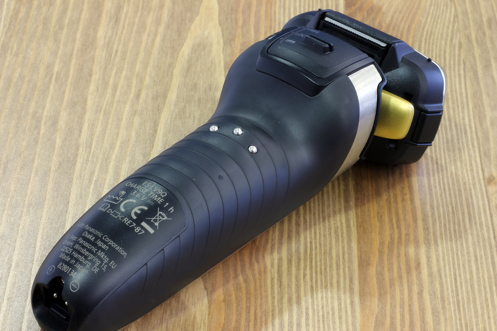 An der Verarbeitungsqualität gibt es nichts auszusetzen. Das Gehäuse besteht zu einem Großteil aus robustem Kunststoff. Unsere Falltests aus einem Meter Höhe auf den Badezimmerboden übersteht der Rasierer unbeschadet. Zwar löst sich der Scherkopf beim Aufprall, dieser lässt sich aber einfach wieder aufstecken. Für einen sicheren Halt in der Hand überzieht eine geriffelte Gummioberfläche die Rückseite. Die verschiedenen Komponenten sind sauber miteinander verbunden. Größere Spaltmaße sind nicht vorhanden. Produktionsrückstände an den Kanten sucht man ebenfalls vergeblich. In puncto Verarbeitung wird Panasonic dem Premium-Anspruch also definitiv gerecht.