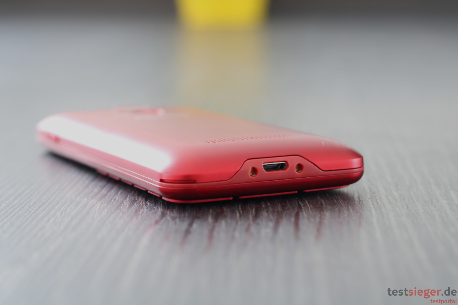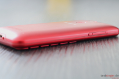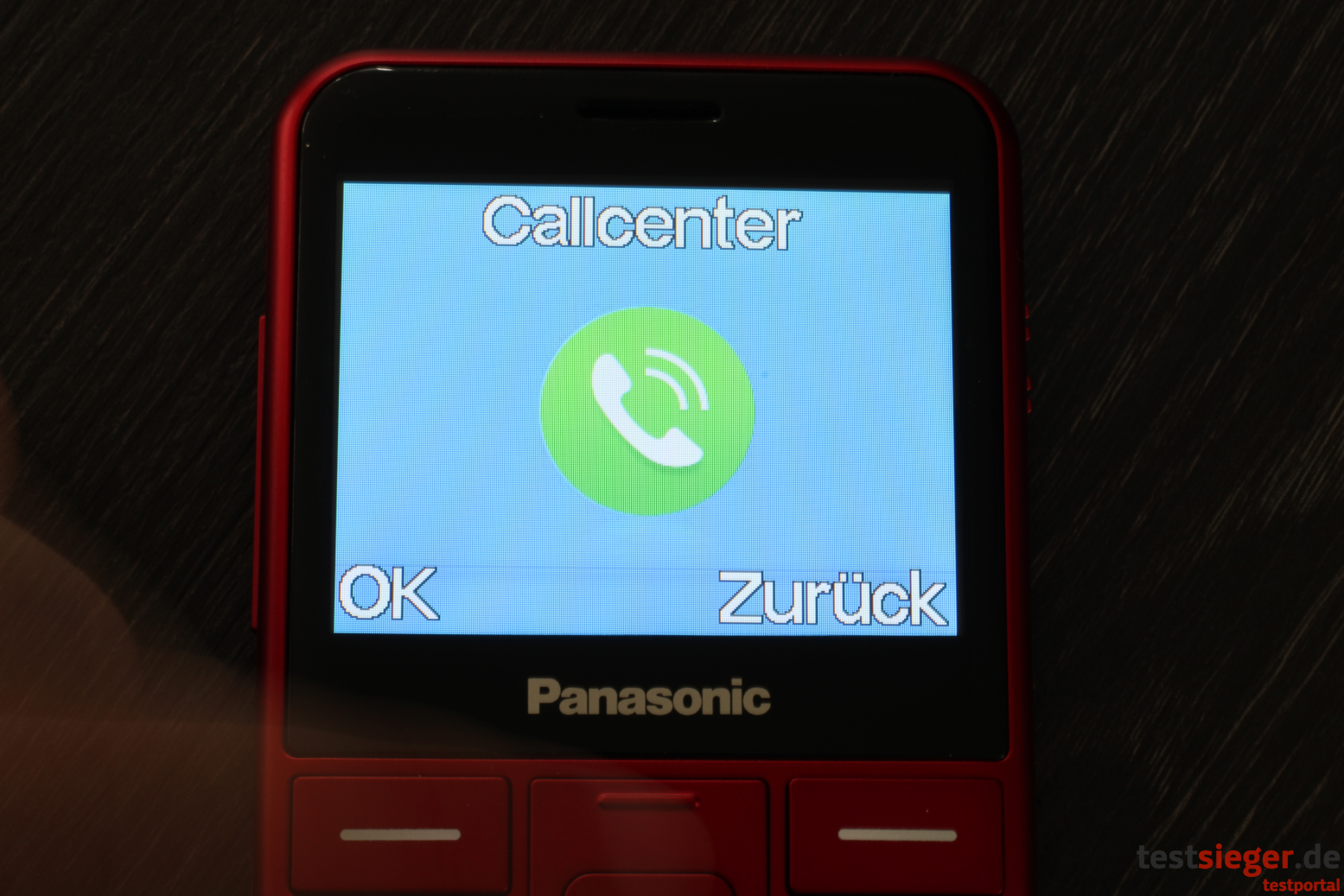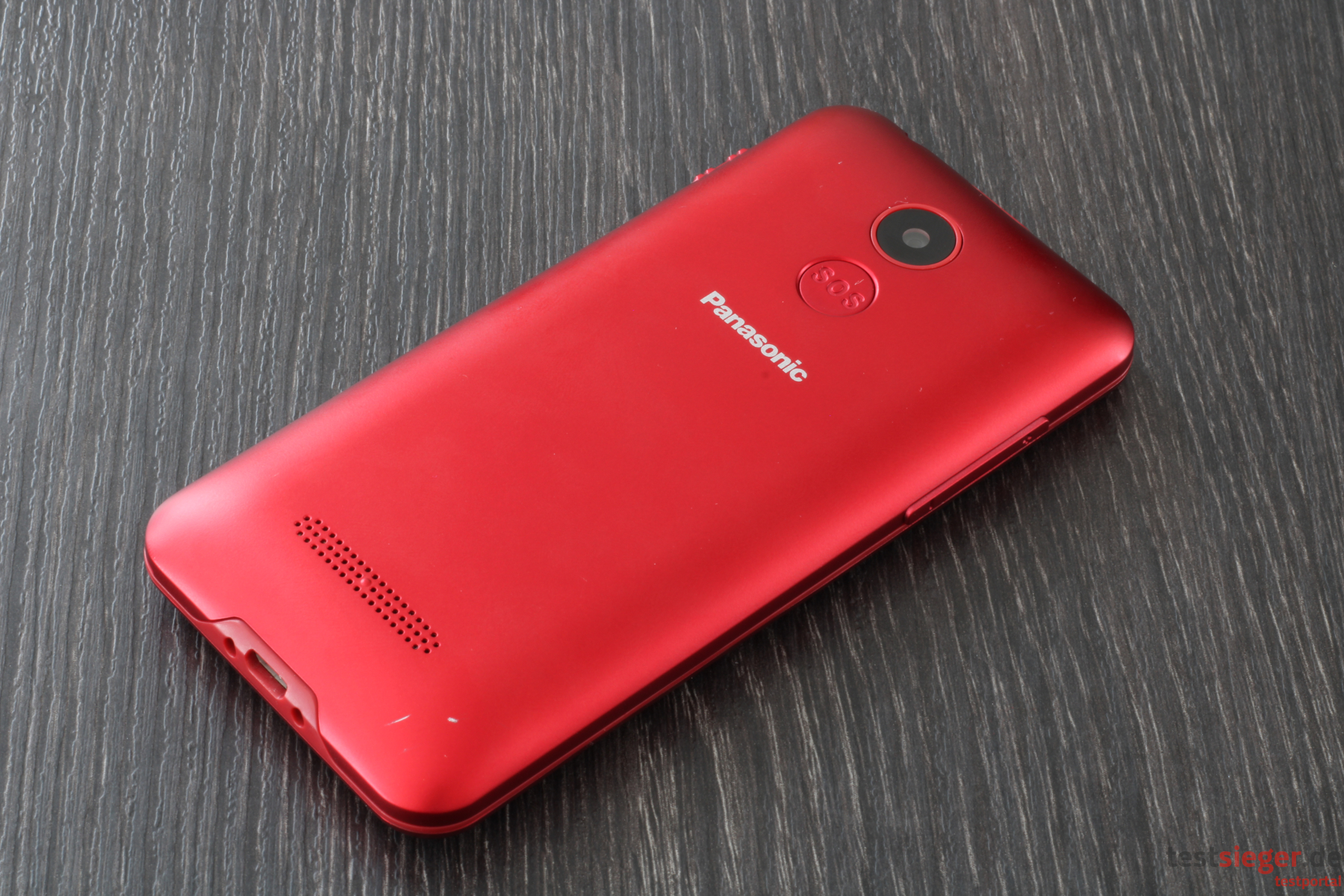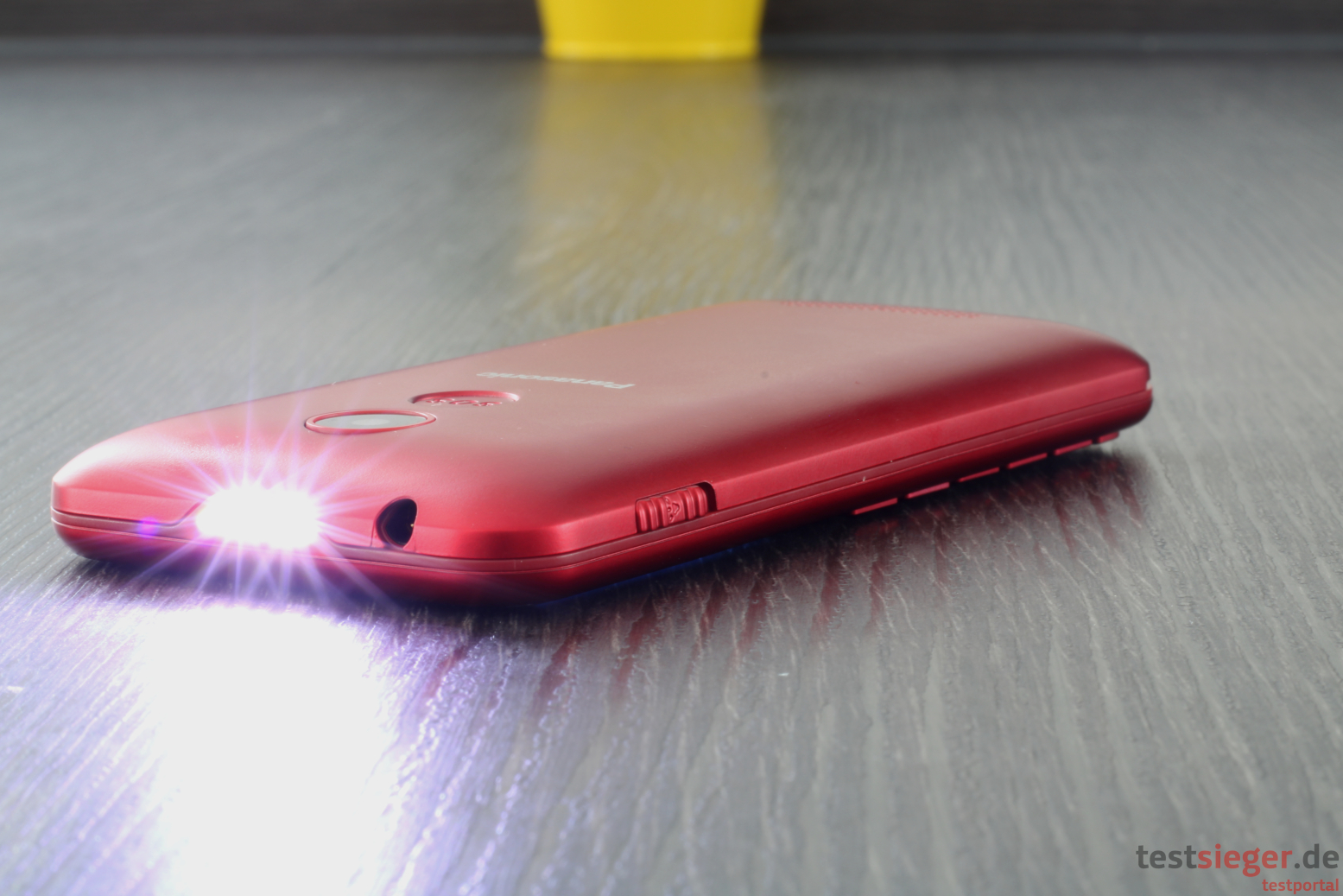 Optisch hinterlässt das Telefon einen guten Eindruck. Das Panasonic ist nahezu komplett in Metallicrot gehalten. Obwohl es komplett aus Kunststoff besteht, erzeugt es somit trotzdem einen Aluminium-Effekt – schick. Darüber hinaus hat sich Panasonic für einen klassischen Handy-Look entschieden. Ein Klappmechanismus ist also beispielsweise nicht vorhanden. Die Tasten sitzen direkt unter dem Display. Die Kanten und Ecken sind leicht abgerundet, wodurch das Handy angenehm in der Hand liegt.Wie bereits erwähnt, besteht das Gehäuse komplett aus Kunststoff. Die Verarbeitungsqualität pendelt sich im Mittelfeld ein. Das Handy lässt sich ohne große Kraftanstrengung biegen, wobei sich die Rückabdeckung ein Stück löst. Unsere Falltests überlebt das KX-TU150EXR jedoch unbeschadet. Ebenfalls positiv: Trotz abnehmbarer Hinterseite fallen die Spaltmaße angenehm klein aus und es besteht keine Gefahr, dass sich Schmutz und Staub in den Ritzen sammelt. Scharfe Kanten entdecken wir ebenfalls nicht. Mit 12 Zentimetern in der Höhe, 5,8 Zentimetern in der Breite und 1,2 Zentimetern in der Tiefe ist das Telefon kompakt ausgefallen und punktet zudem durch ein niedriges Gewicht von knapp 100 Gramm. Damit passt es in jede Hosentasche und fällt selbst bei längeren Ausflügen nicht zur Last.