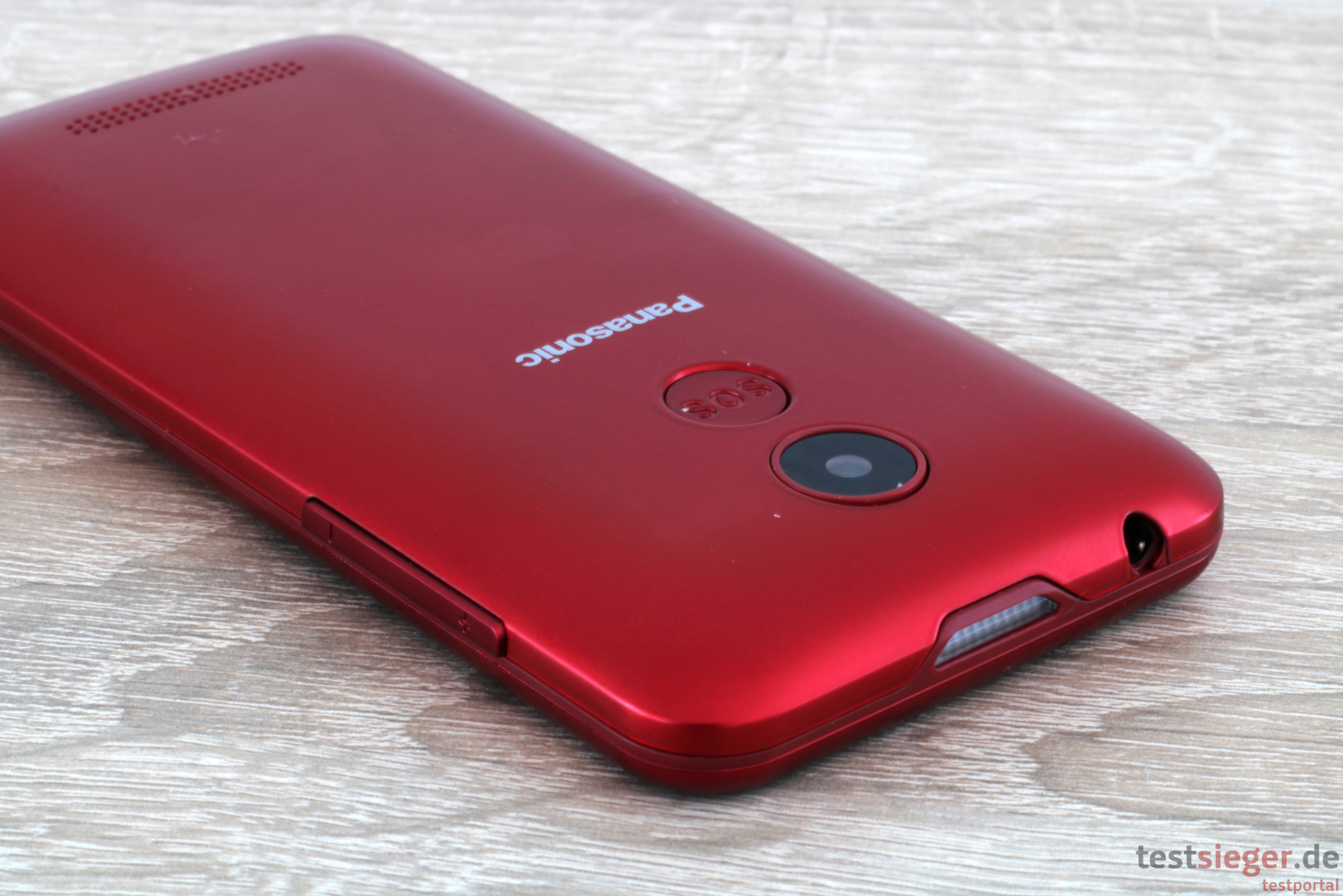 Das herausstechende Ausstattungsmerkmal ist wohl die SOS-Notruftaste auf der Rückseite. Hier kann der Nutzer bis zu fünf Kontakte hinterlegen, die das KX-TU155EXRN per Tastendruck automatisch hintereinander anruft, falls einer der Teilnehmer nicht erreichbar sein sollte. Die Taste aktiviert auch direkt die Freisprechfunktion. Eine zweite Rückabdeckung mit der sich die Taste bei Nichtgebrauch abdecken lässt, hat sich Panasonic jedoch gespart. Damit die Funktion nicht aus Versehen startet, muss der Nutzer sie für knapp eine Sekunde halten.