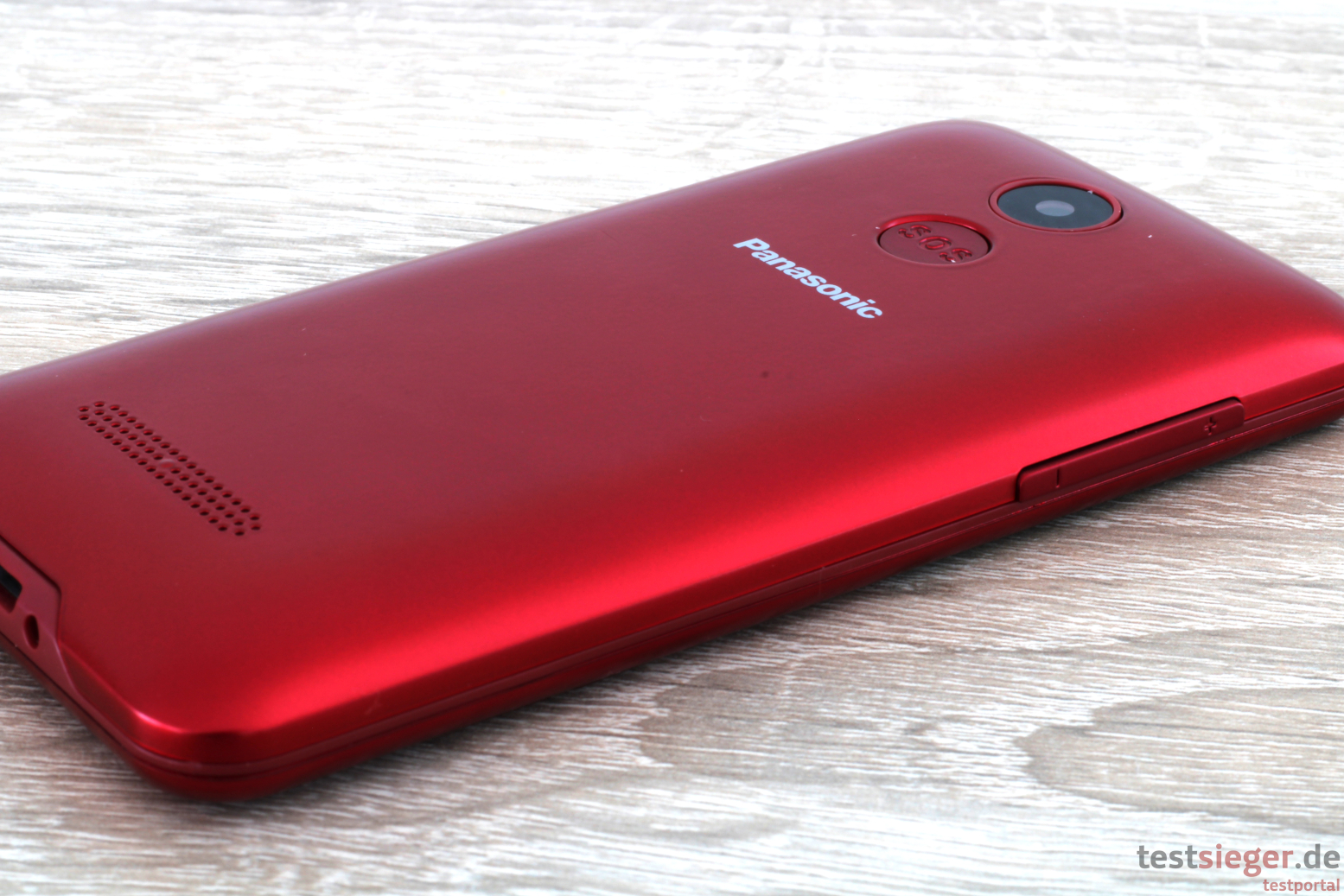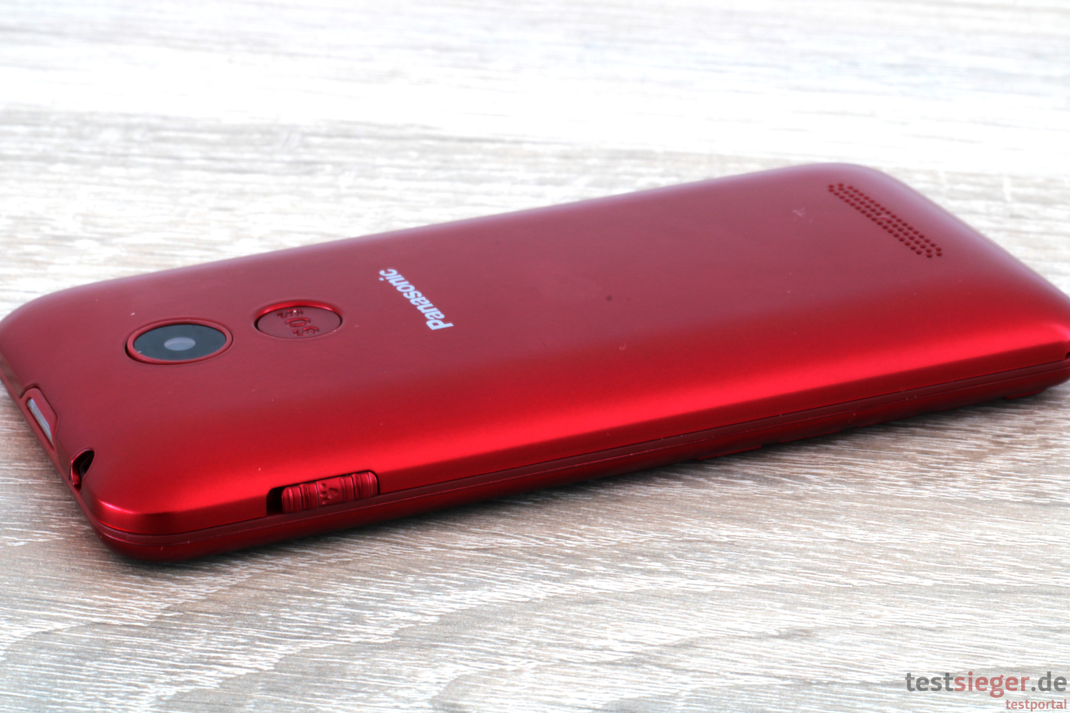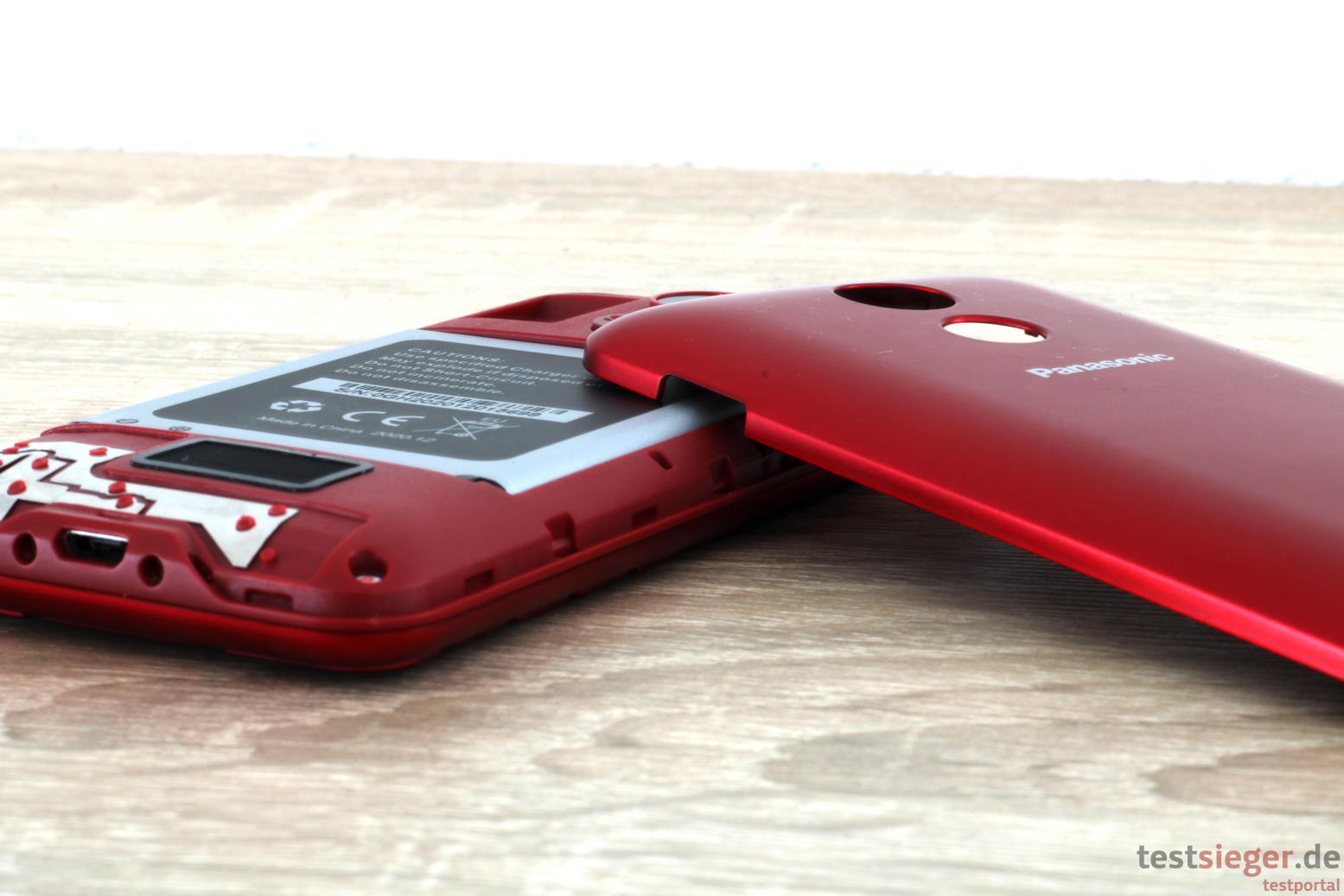 Optisch macht das Panasonic KX-TU155EXRN auf uns einen guten Eindruck. Das Gerät setzt auf klare Formen ohne größere Verschnörkelungen. Unser Testgerät in metallischem Rot ist aber trotzdem recht auffällig. Uns gefällt vor allem der Aluminium-Effekt, den die Oberfläche trotz Kunststoffbauweise erzeugt. Wer es lieber etwas dezenter möchte, greift zur dunkelblauen oder schwarzen Farbvariante. Panasonic entscheidet sich dabei für einen klassischen Handy-Look entschieden. Die Tasten sitzen also direkt unter dem Bildschirm. Dank der leicht abgerundeten Kanten liegt das Telefon komfortabel in der Hand. Die Rückseite ist angenehm griffig und rutscht nicht.Die Verarbeitungsqualität schafft es nicht ganz in Spitzenregionen, was vor allem am recht dünnen Gehäuse liegt. Dieses lässt sich sehr leicht biegen, wobei sich auch die abnehmbare Rückabdeckung ein Stück löst. Unsere Belastungstests übersteht das Panasonic zwar schadlos, wir würden jedoch nicht die Hand dafür ins Feuer legen, dass es bei einem Sturz Schaden nimmt. Davon abgesehen gibt es jedoch nichts zu beanstanden. Die Spaltmaße sind angenehm klein, selbst am Übergang zur Rückseite. Unsaubere Kanten mit Produktionsrückständen entdecken wir ebenfalls nicht. Mit 12 Zentimetern in der Höhe, 5,8 Zentimetern in der Breite und 1,2 Zentimetern in der Tiefe ist das Telefon kompakt ausgefallen und punktet zudem durch ein niedriges Gewicht von knapp 100 Gramm. Damit passt es in jede Hosentasche und fällt selbst bei längeren Ausflügen nicht zur Last.