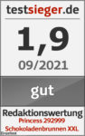 Der Princess 292999 Schokoladenbrunnen XXL macht auf Partys eine gute Figur. Der Betrieb funktioniert einwandfrei, Design und Verarbeitungsqualität gefallen uns ebenfalls. Allerdings hätten wir uns eine etwas weniger wackelige Turm-Konstruktion gewünscht. Die Bedienung bereitet keine Probleme und ist im Handumdrehen erlernt. Die Lautstärke ist nicht zu unterschätzen, geht im normalen Partylärm jedoch unter. Wer den Schokobrunnen bei einem gemütlichen Abend zu zweit verwenden möchte, könnte allerdings gestört sein. Die Reinigung geht insgesamt gut von der Hand, dauert aber eine Weile.