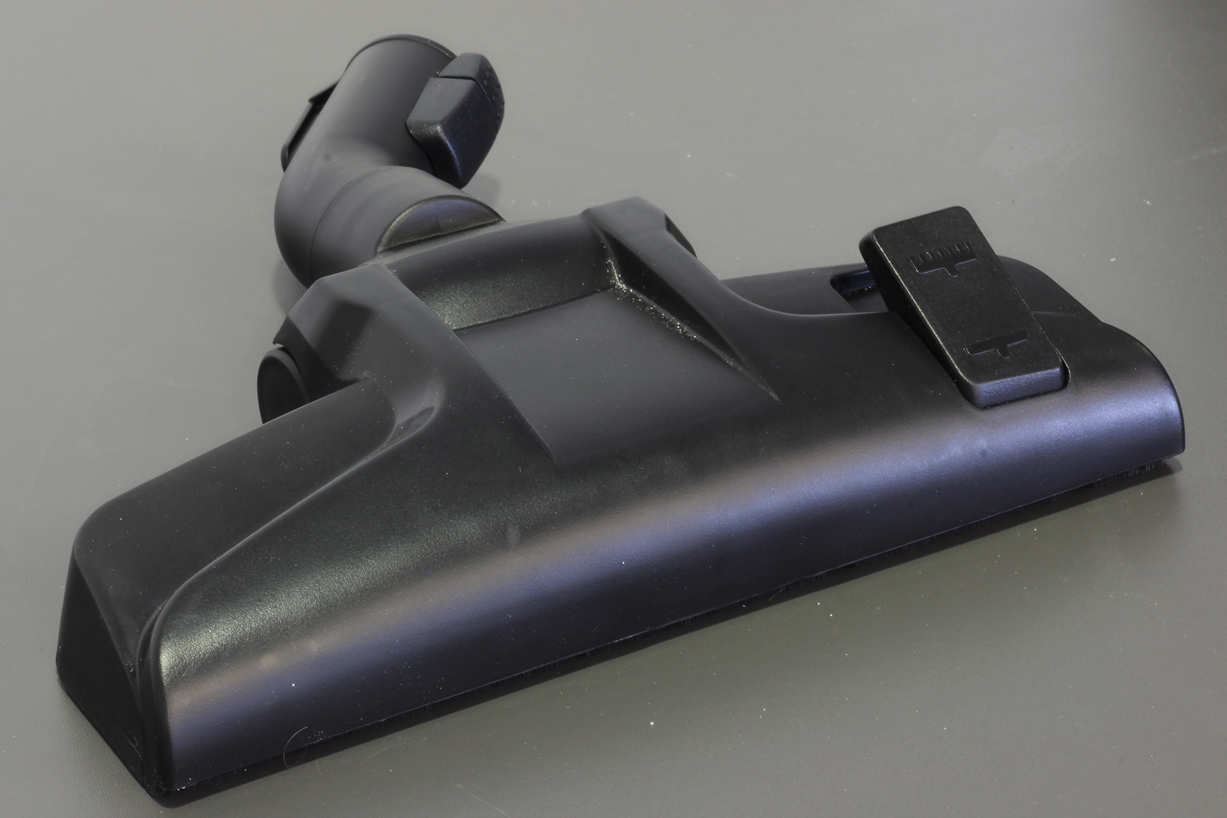 Spitze Kanten, die den Möbeln bei Kontakt schaden könnten, sind nicht vorhanden. Da die Front jedoch nicht gummiert oder in einer anderen Form gedämpft ist, ist trotzdem etwas Vorsicht geboten. Die Abmessungen liegen mit 46 Zentimetern in der Tiefe, 30 Zentimetern in der Breite und 25 Zentimetern in der Höhe im normalen Rahmen. Insgesamt ist der Princess zwar kein Leichtgewicht, über den Tragegriff kann der Nutzer ihn aber problemlos von Raum zu Raum tragen. Im Vergleich zur Motoreinheit fällt die Düse in Sachen Verarbeitung etwas ab. Der verwendete Kunststoff wirkt nicht ganz so robust und knarzt an allen Ecken und Enden.
