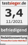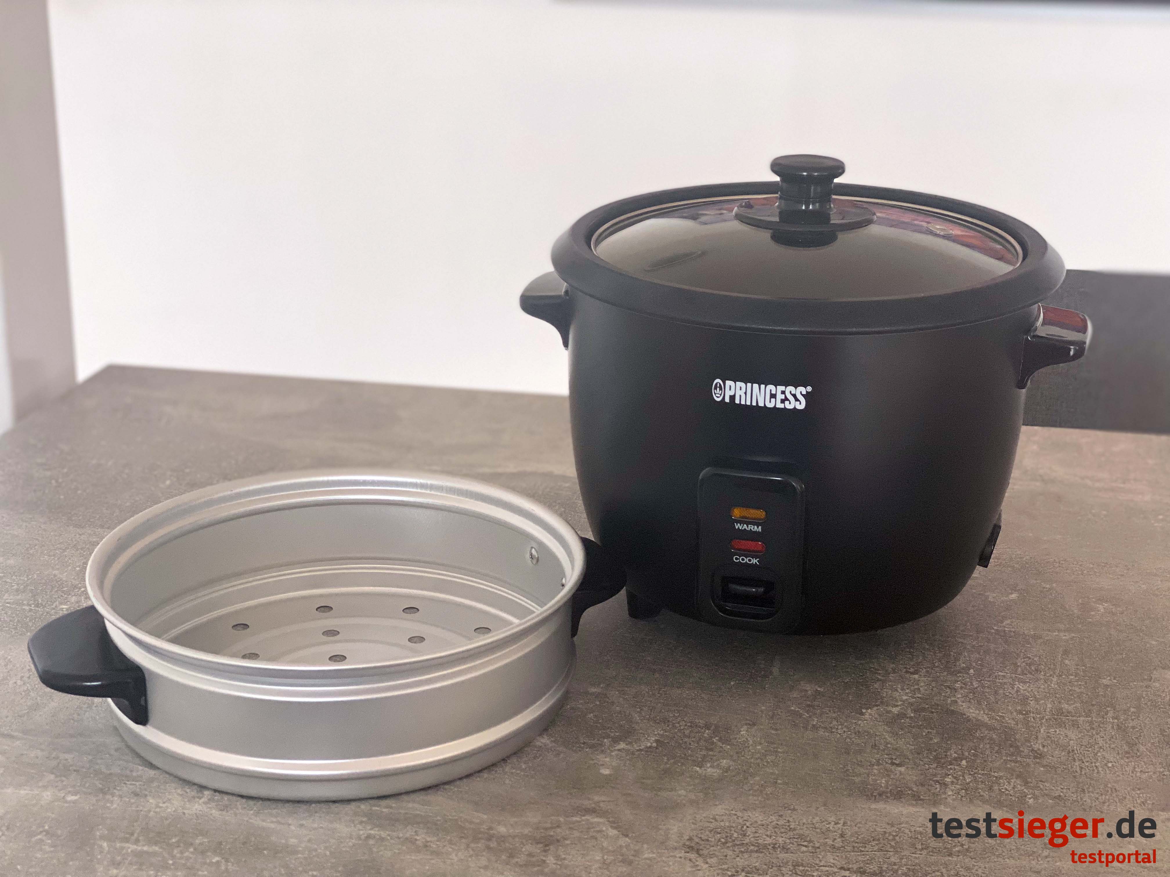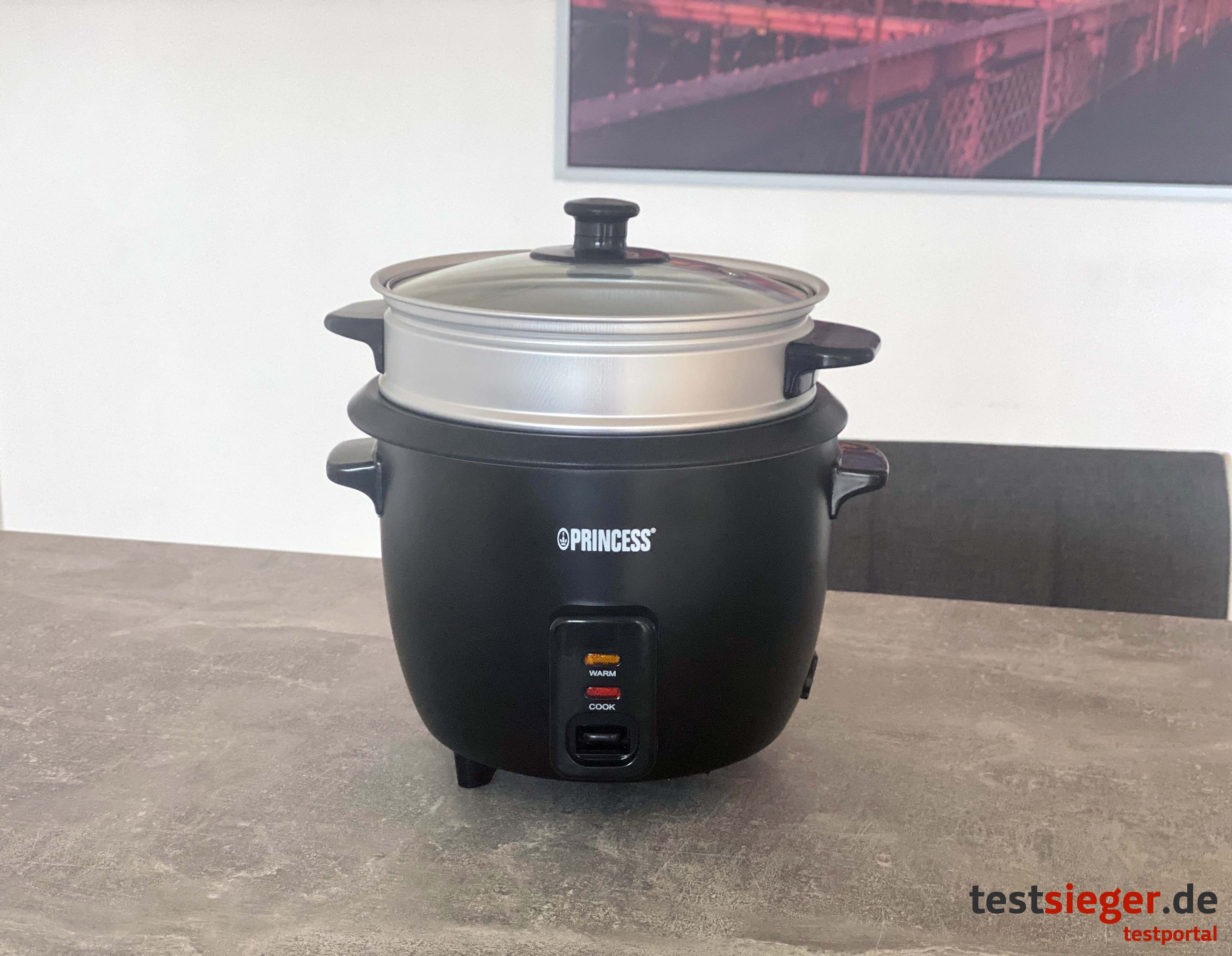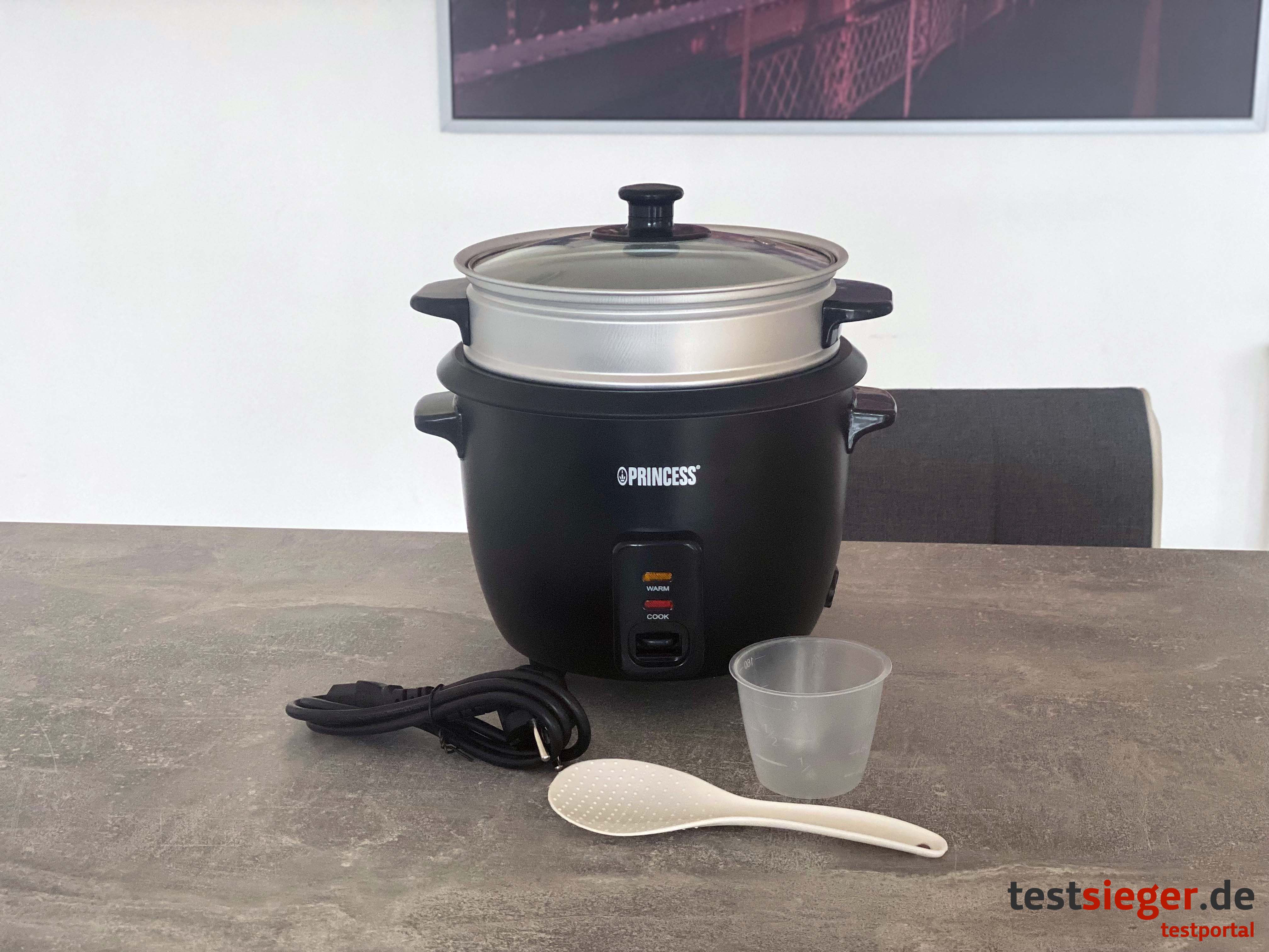 Im Test überzeugt uns der Princess Rice Cooker Matt Black leider nicht. Die einzelnen Komponenten lassen sich nur locker zusammenstecken. Demnach wackelt und klappert der Reiskocher. Wer den Reis nicht äußerst gründlich wäscht, den erwartet eine böse Überraschung und muss nach dem Kochen nicht nur den Reiskocher, sondern gleich die halbe Küche putzen. Der Kochvorgang dauert länger als herkömmlich mit Topf und Herd und die Antihaftbeschichtung könnte robuster sein. Das gute Ergebnis sowie die praktische Warmhaltefunktion und das nützliche Zubehör können die Enttäuschung nicht wettmachen.