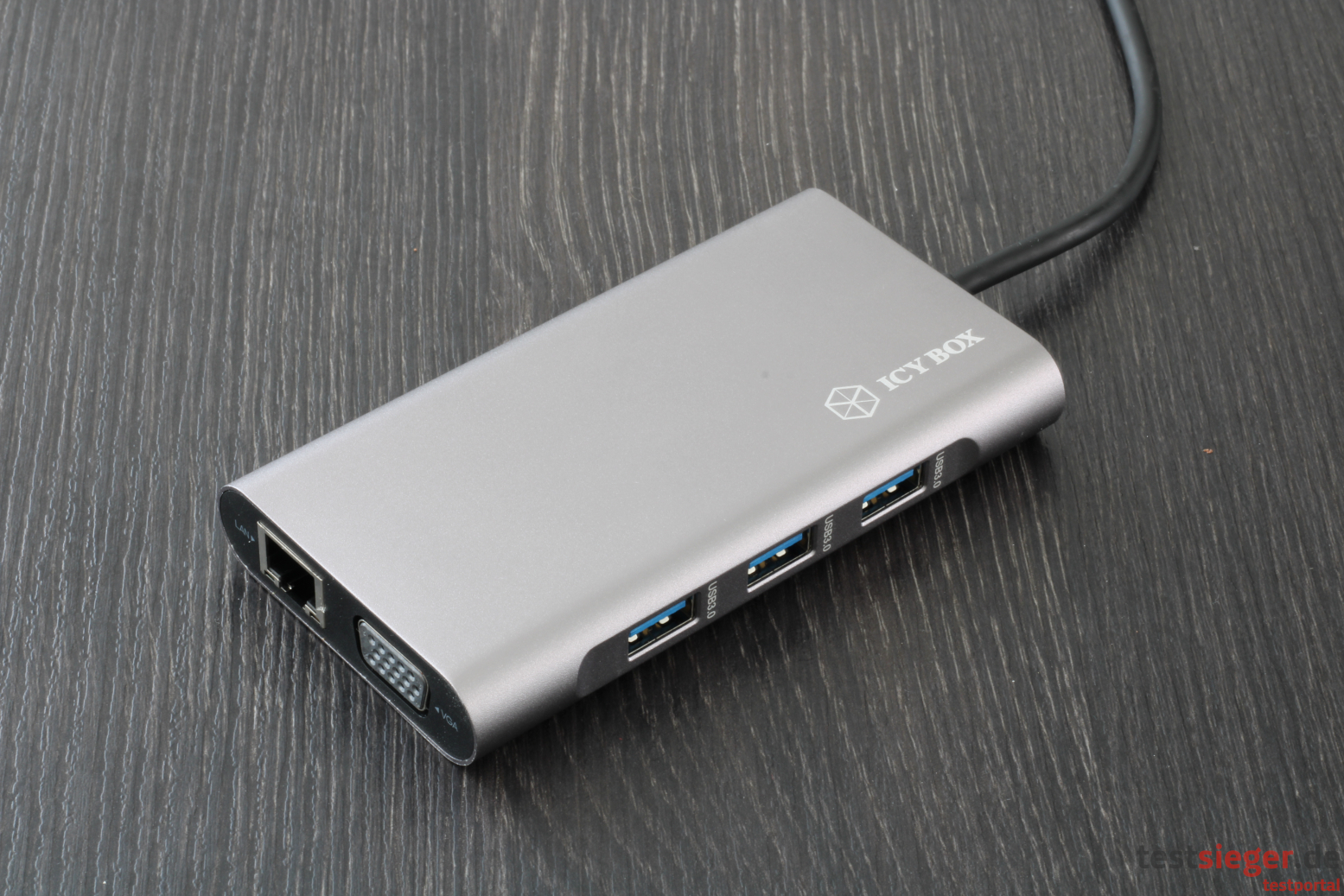 Die Anschlussvielfalt ist gerade in Anbetracht der kompakten Abmessungen beeindruckend. Der Vorderseite hat RaidSonic direkt drei USB-3.0-Schnittstellen spendiert, die allesamt Übertragungsraten von bis zu fünf Gbit/s liefern sollen. Das können wir im Praxistest in etwa bestätigen auch wenn die Maximalgeschwindigkeit natürlich von verschiedenen Faktoren abhängt und nur selten erreicht wird. An der Seite findet sich neben einem VGA-Videoausgang auch noch eine Ethernet-Schnittstelle. Letztere ist besonders praktisch, schließlich sparen Notebookhersteller diese heutzutage gerne weg. Die Verbindung zum Monitor beziehungsweise dem heimischen Netzwerk klappt reibungslos und die Anschlüsse arbeiten vorbildlich.