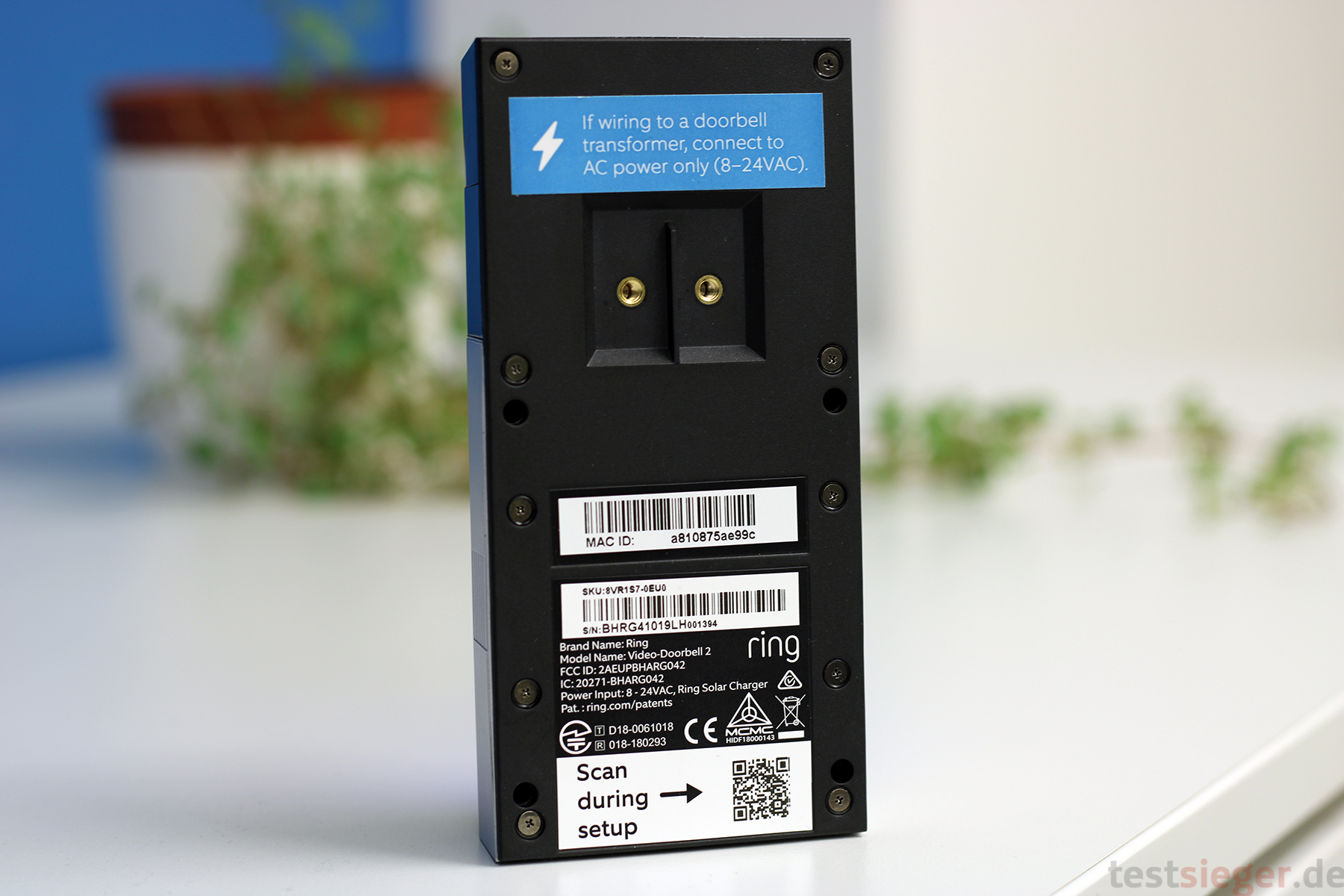 Der integrierte Lithium-Polymer-Akku verfügt über einen MicroUSB-Anschluss zum Laden. Eine komplette Ladung dauert knapp drei Stunden und geht damit erfreulich schnell. Das ist allerdings auch wichtig, schließlich muss der Nutzer in dieser Zeit ohne Klingel auskommen. Laut Ring hält die Doorbell 2 mit einer vollen Ladung sechs bis acht Monate durch. Ob diese Werte stimmen, muss jedoch ein Langzeittest zeigen.