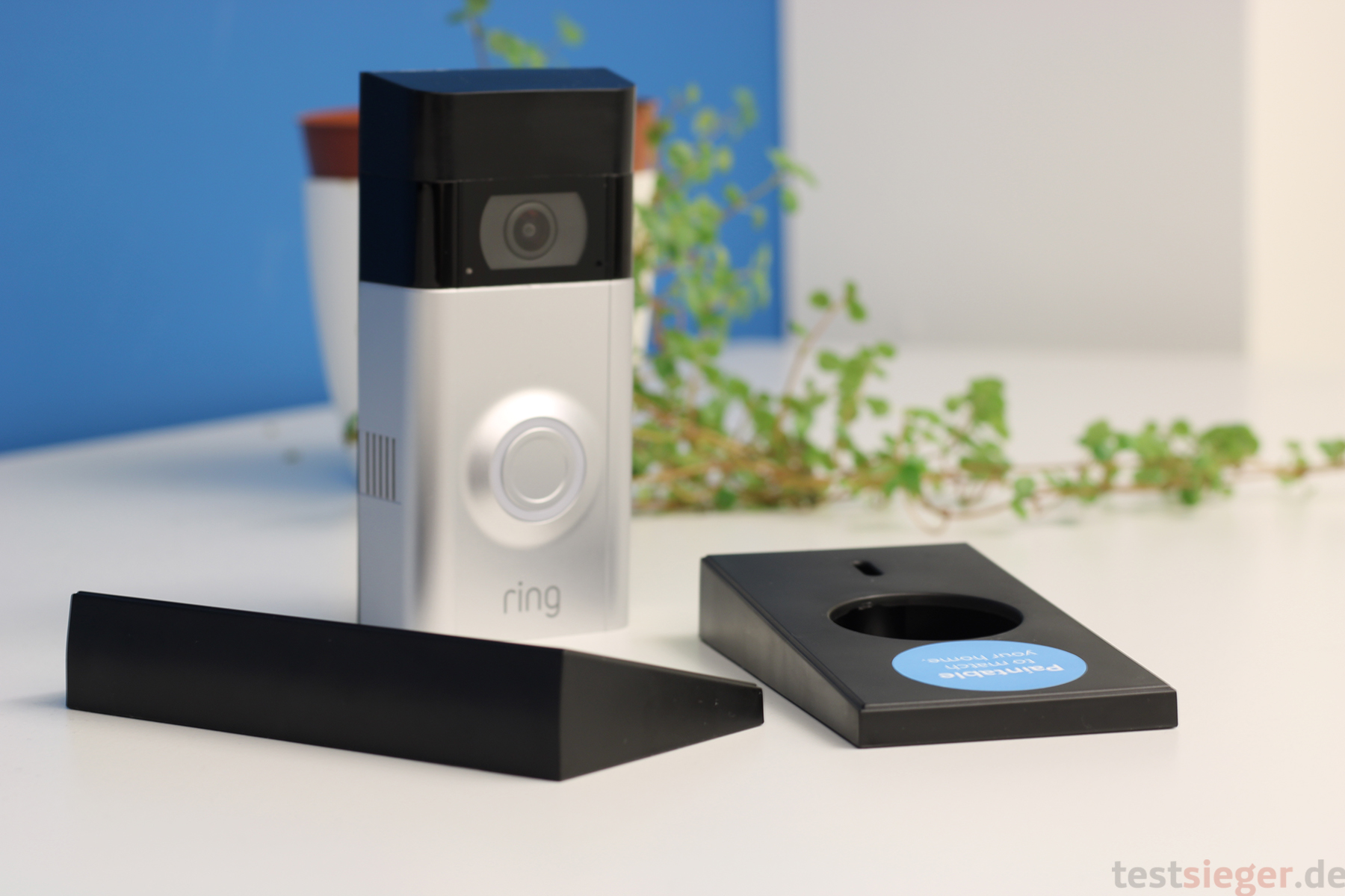 Die Montage bereitet ebenfalls keine größeren Probleme. Wie bereits erwähnt hat Ring hier wirklich an alles gedacht. Sogar an einen Adapter, falls sich bereits der Vorgänger an der Wand befindet. Ring gibt eine Optimalhöhe von 1,2 Metern an. Wenn das nicht möglich ist, richtet eine Adapterplatte die Video Doorbell 2 leicht schräg nach unten aus. Eine zweite Platte ist für eine seitliche Neigung vorgesehen. Falls nötig sind die beiden Platten auch zueinander kompatibel – perfekt.