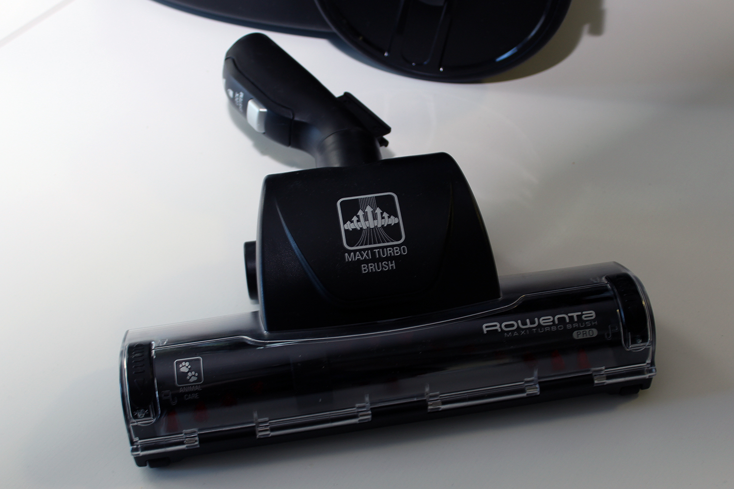 Im Lieferumfang befindet sich eine Universalbürste namens Power Glide, die sich sowohl für Parkett als auch für Fliesen und Teppich eignet. Über eine Tritttaste an der Düse lässt sich zwischen der Verwendung auf Hart- oder Teppichboden umschalten. Für starke Verschmutzungen auf Langflor-Teppichen ist eine dritte Option wählbar. Darüber hinaus hat Rowenta dem RO7681EA weiteres Zubehör spendiert. Hier sticht vor allem die Maxi-Turbobürste hervor, die mit ihren langen, rotierenden Borsten in erster Linie für Tierhaare auf Teppich geeignet ist. Eine kompaktere Variante der Turbobürste für Möbel befindet sich ebenfalls im Lieferumfang. Abgerundet wird das umfangreiche Gesamtpaket durch eine Parkettdüse, eine Fugendüse und eine Sofabürste.