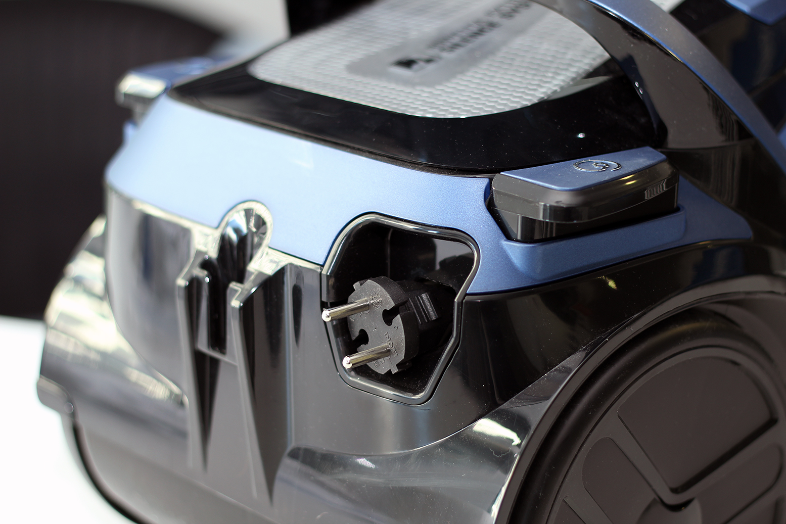 Über einen Schieberegler am Handgriff kann der Nutzer den Lufteinlass öffnen und verschließen und damit die Saugleistung einstellen. Die Knöpfe für den Ein- und Ausschalter und den Kabeleinzug am Gehäuse sind so groß, dass sie sich problemlos mit dem Fuß betätigen lassen. Die beiden Tasten haben einen angenehmen Druckpunkt und lassen sich ohne Kraftaufwand drücken.