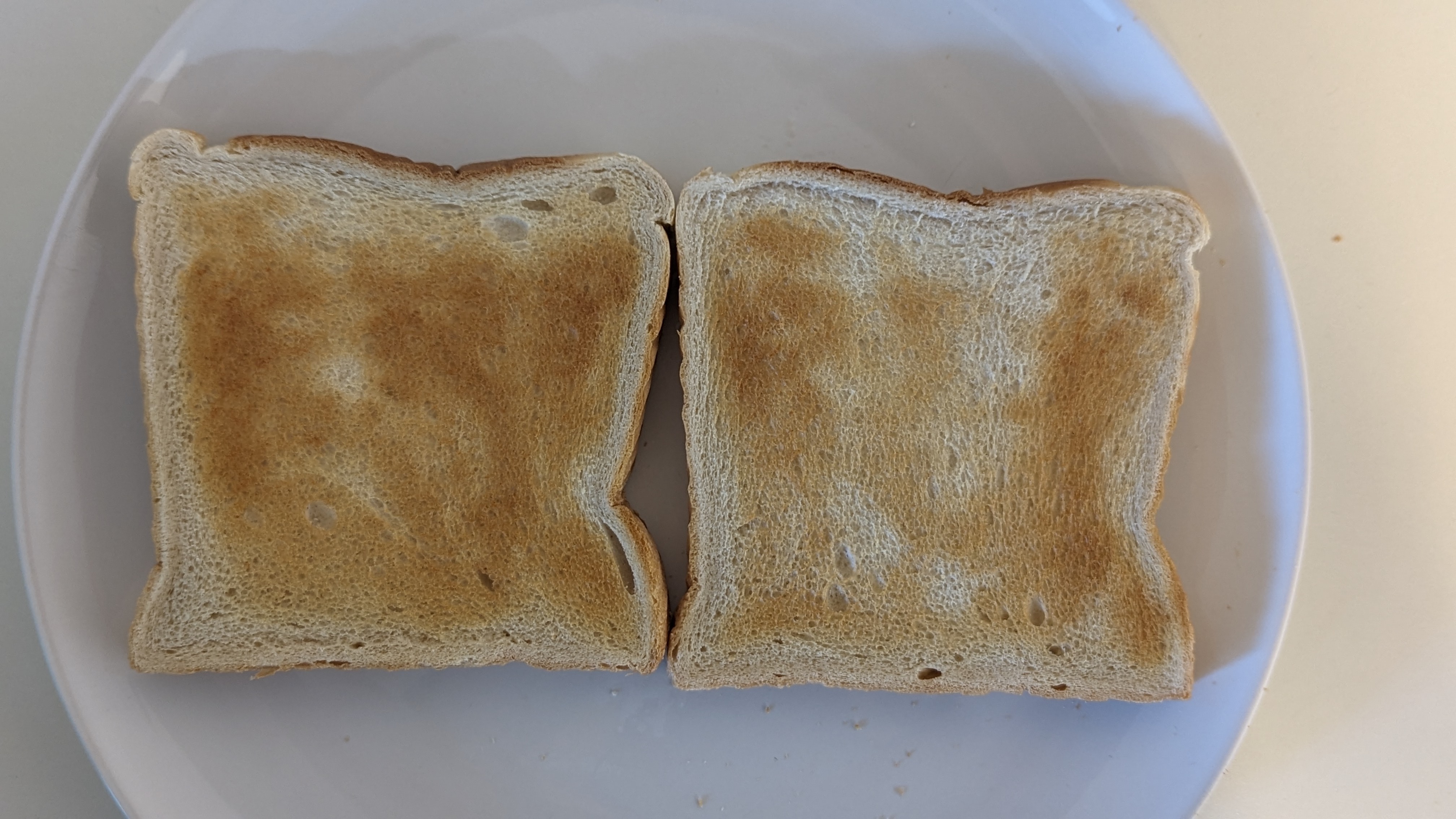 Insgesamt sind die Ergebnisse des Russell Hobbs Toaster Textures+ in Ordnung. Nahezu die komplette Fläche der Toasts und Brötchen sind gebräunt. Dafür müssen Nutzerinnen und Nutzer aber in der Zubereitungszeit sowie der Gleichmäßigkeit der Bräunung Abstriche machen.