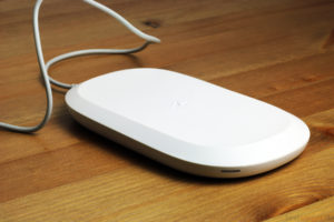 Optisch ist die SanDisk fast komplett in Weiß gehalten, einzig auf der Unterseite kommt violett ins Spiel. Da diese allerdings so gut wie nie zu sehen ist, schließlich liegt fast die komplette Fläche auf, muss sich der Nutzer mit der Farbeinheit anfreunden können. Insgesamt wirkt die Ladestation zurückhaltend und sollte sich in fast jedes Wohnambiente gut einfügen. Die Verarbeitungsqualität geht insgesamt in Ordnung, auch wenn der verwendete Kunststoff leicht nachgibt und sich ohne großen Kraftaufwand eindrücken lässt. Außerdem hören wir bereits bei leichtem Biegen ein deutliches Knarzen. Unsere Falltests übersteht der Wireless Charger jedoch problemlos. Große Spaltmaße an den Verbindungsstellen der verschiedenen Komponenten sind nicht vorhanden. Produktionsrückstände entdecken wir ebenfalls nicht, die Kanten sind sauber verarbeitet.Mit Abmessungen von 10 Zentimetern in der Breite, 18 Zentimetern in der Tiefe und 1,6 Zentimetern in der Höhe liegen die Maße absolut im Rahmen. Der Nutzer muss sich allerdings im Klaren darüber sein, dass die Ladestation beispielsweise ein gutes Stück des Nachttischs einnimmt. Eine große gummierte Fläche an der Unterseite garantiert einen sicheren Halt. Nur viel Krafteinsatz kann die SanDisk noch verschieben. Der Nutzer muss also keine Angst haben, dass sie bei einem leichten Stoß vom Tisch fällt.