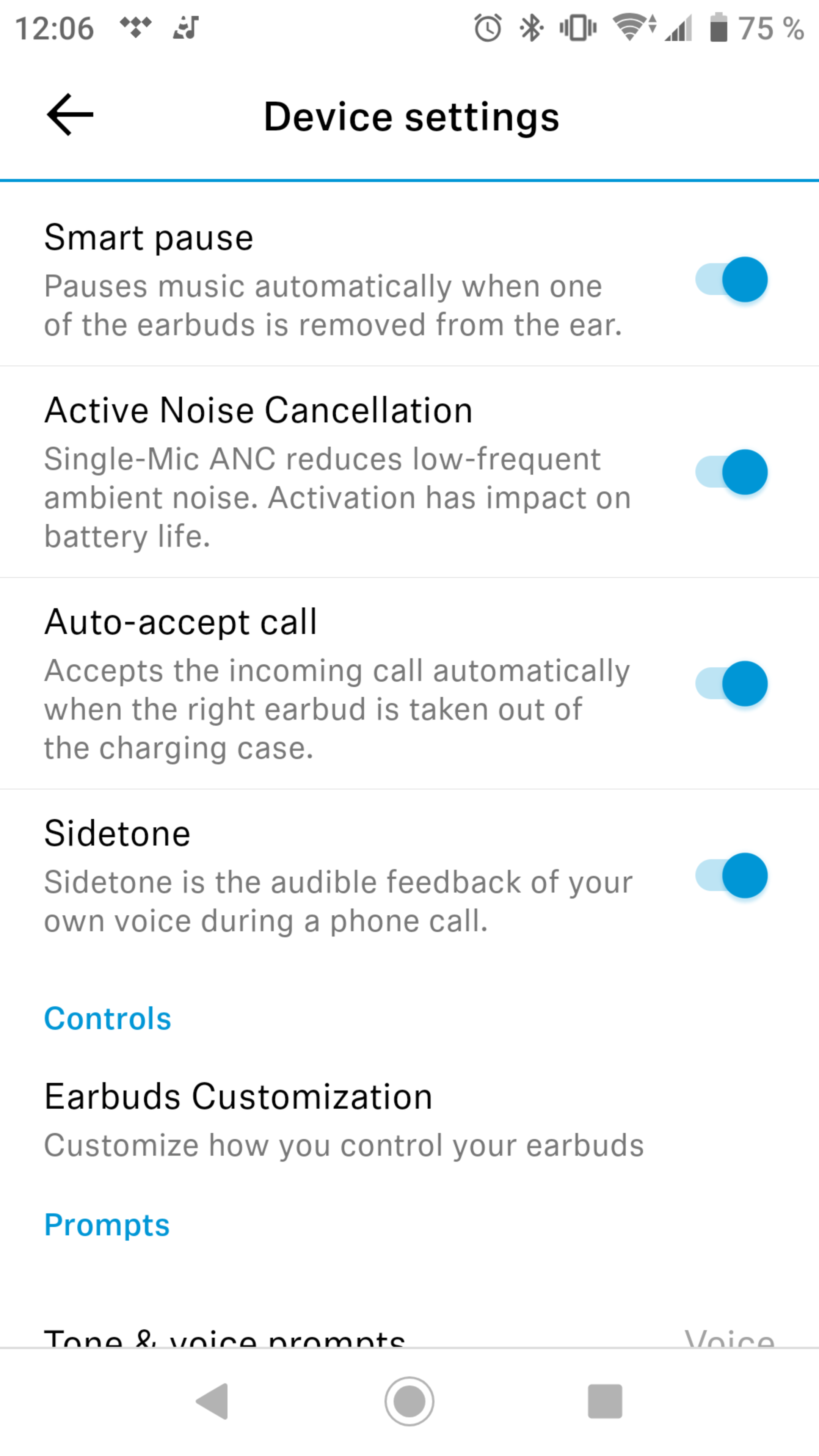 Die App beinhaltet wie gewohnt weitere Einstellungen übersichtlich aufbereitet. Sie bietet zum Beispiel die Auswahl, ob beim bewährten Hear-Through-Modus (der Umgebungsgeräusche dem Signal zumischt, um ansprechbar zu sein) die Musik weiterlaufen oder stoppen soll. Stoppen ist praktisch, um ein Gespräch zu führen, möchte man dagegen die Verkehrssicherheit beim Radeln beibehalten, hört man mit laufender Musik dennoch, ob sich ein Auto nähert. Die App bietet noch einige zusätzliche Einstellungen wie einen einfachen Equalizer mit mehreren personalisierbaren Presets, das Ein- und Ausschalten der Smart-Pause-Funktion und mehr.