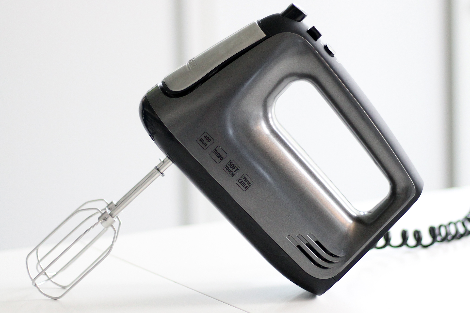 Bei der Handhabung macht sich der Soft-Touch-Griff bemerkbar, dank dem der Mixer nicht nur komfortabel in der Hand liegt, sondern auch jederzeit sicher auf die Rückseite gestellt werden kann, wenn eine Rührpause nötig ist. Drei Bedienelemente – der Geschwindigkeitsregler, die Turbo- und die Auswurftaste – machen die Bedienung des Mixers außerdem einfach und intuitiv, wobei die Tasten sowohl von Rechts- als auch von Linkshändern gut erreicht werden können. Beim Rührwerkzeug hat der Nutzer je nach Teig die Wahl zwischen den im Lieferumfang enthaltenen Rührbesen oder Knethaken. Diese werden lediglich mit etwas Druck in die dafür vorgesehenen Öffnungen auf der Unterseite des Mixers gesteckt und können durch das Betätigen der Auslösetaste kinderleicht wieder ausgeworfen werden. Beim Rühren selbst stehen dem Nutzer fünf Geschwindigkeits- und eine Turbostufe zur Verfügung. In der Anleitung sind neben den Sicherheitshinweisen auch alle Tasten inklusive Funktion sowie die Geschwindigkeitsschaltung und die richtige Auswahl der Rühreinsätze ausführlich erklärt.