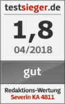 Die Severin KA 4811 ist eine gute Filterkaffeemaschine. Sie überzeugt vor allem durch das integrierte Mahlwerk, das gleichmäßiges Kaffeepulver produziert. Dementsprechend punktet auch der fertige Kaffee durch einen angenehmen Geschmack. Dafür muss der Nutzer aber auch sehr lange warten, denn die Maschine lässt sich beim Brühen einer verhältnismäßig kleinen Menge Kaffee viel Zeit. Die Bedienung und die Handhabung haben uns vor keine größeren Probleme gestellt. Einzig der zu feste Druckpunkt der Tasten bereitet Probleme. Das Mahlwerk ist kurzzeitig sehr laut. Während des Brühvorgangs ist die Severin aber fast nicht zu hören.