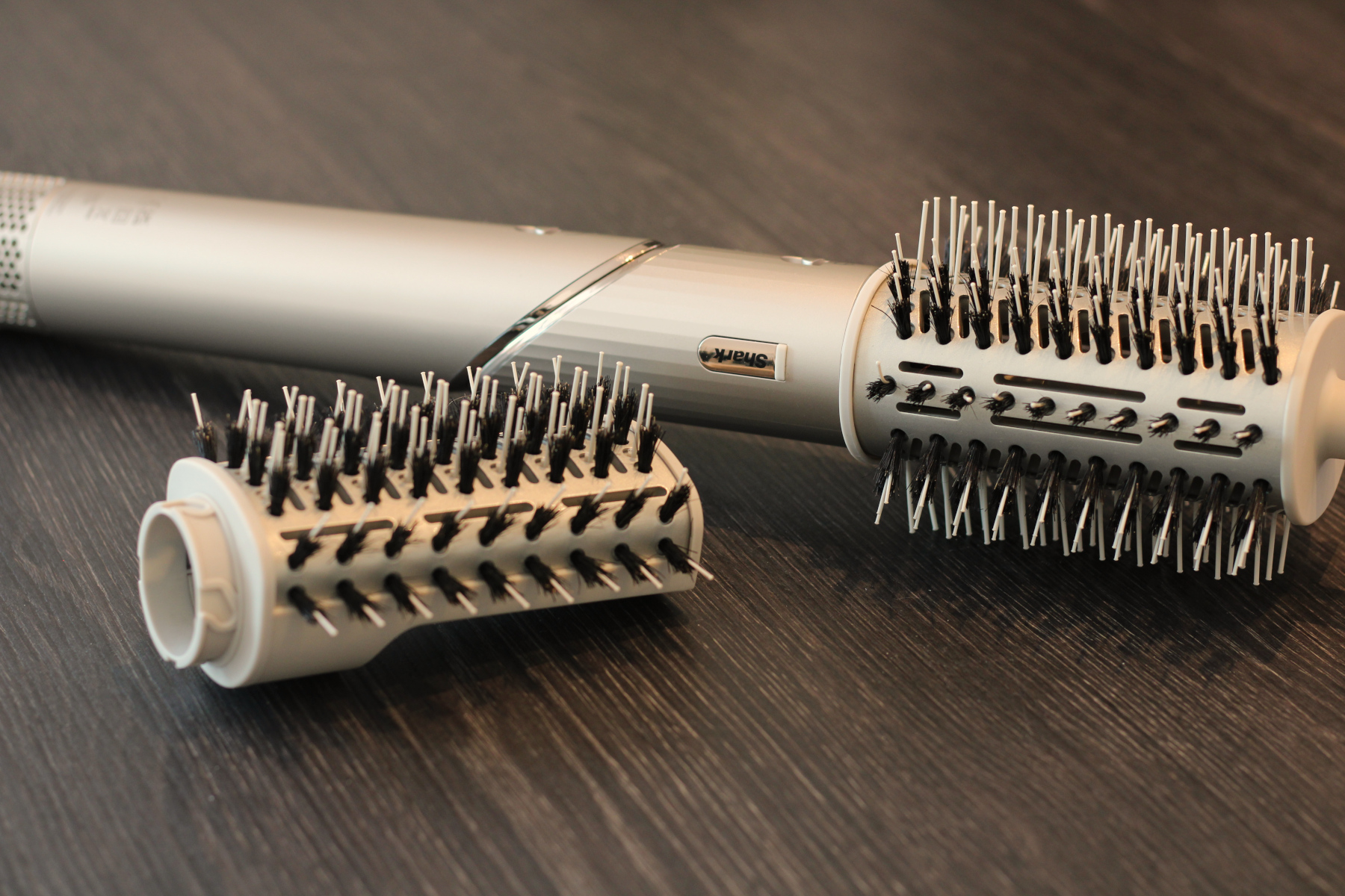 Der Shark FlexStyle kommt mit zwei Lockenstäben daher – ein rechtsdrehender für die rechte und ein linksdrehender für die linke Kopfseite, sodass das Gesicht ideal von den Locken eingerahmt wird. Der Clou: Die Aufsätze arbeiten mit dem Coandă-Effekt. Das heißt, durch einen speziellen Luftstrom wickeln sich die Strähnen ganz von selbst um den Aufsatz. In der Praxis klappt das meist ganz gut. Gelegentlich müssen wir jedoch nachhelfen und drehen die Haare manuell um den Stab. Das Styling mit dem Lockenaufsatz benötigt Übung und klappt in unserem Falle noch nicht beim ersten Mal. Nach ein paar Versuchen steht den Traumlocken nichts mehr im Weg. Wir empfehlen allerdings die Verwendung eines entsprechenden Pflegeprodukts, damit die Locken über mehrere Stunden halten.