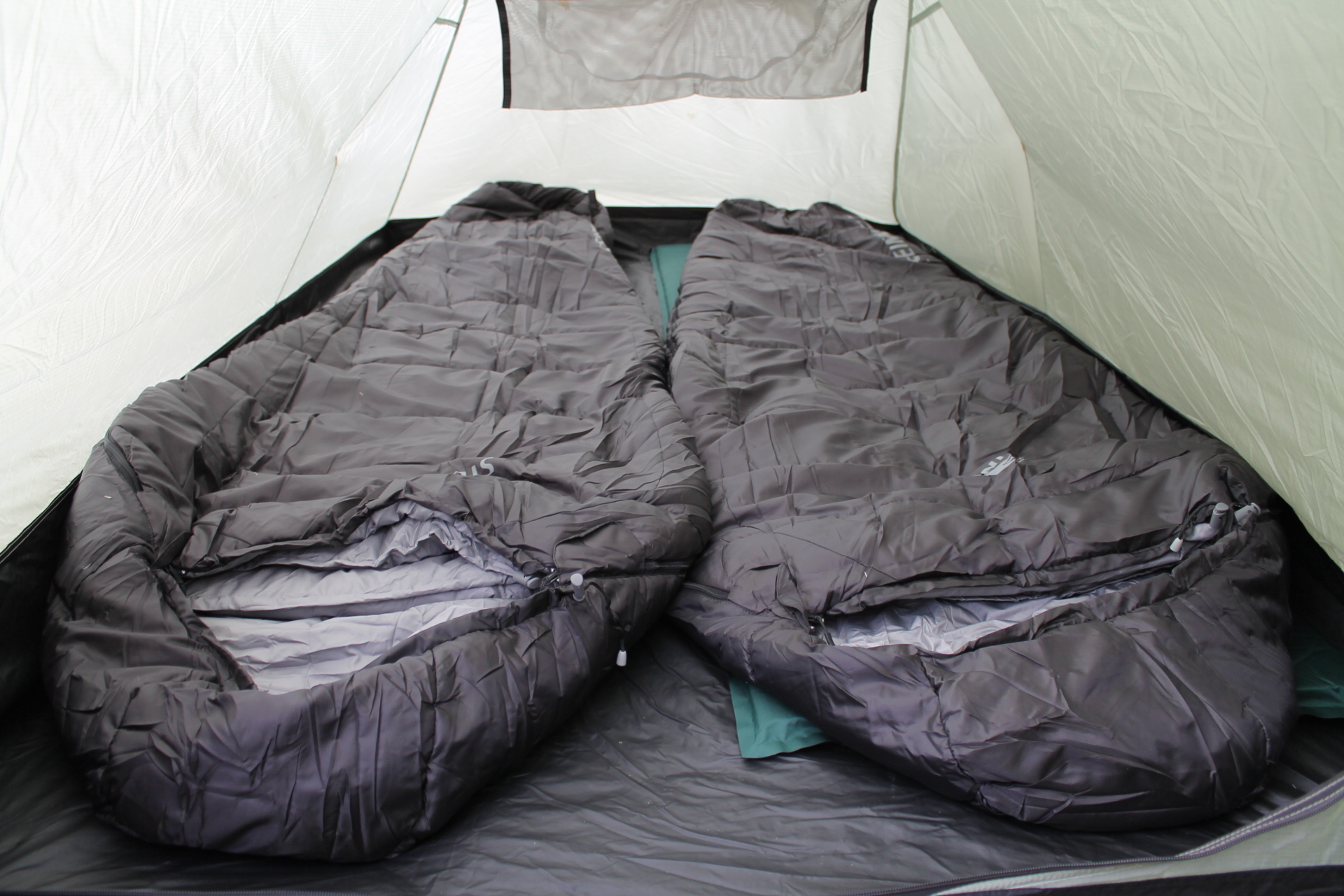 Das Koppeln an sich ist eine sehr feine Sache, grade wenn Tourenpartner ein unterschiedliches Kälteempfinden haben und ihnen körperliche Nähe auch innerhalb eines eher engen Schlafsackes nichts ausmacht. Im Extremfall zum Beispiel bei Unterkühlung oder Krankheit, kann der Körperwärmeaustausch sogar lebensrettend sein. Die Reißverschlüsse laufen sauber durch, nur einmal haben wir den Saum mit eingezogen.