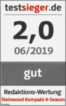 Der Steinwood Kompakt 4-Season ist ein sehr gut verarbeiteter und gut isolierender Schlafsack. Das Preis-Leistungs-Verhältnis überzeugt ebenfalls – für das Geld bekommt der Nutzer ein sehr gut ausgestattetes Produkt, das jede Hüttenwanderung, jeden Campingurlaub oder einen Festivalsommer mit einer warmen Nacht im Schlafsack belohnt. Jedoch eignet sich der Schlafsack nicht für bewusstes Nächtigen bei Temperaturen nahe des Gefrierpunktes oder gar darunter, ohne zusätzliche Wärmeunterstützer wie Inlays oder Funktionsunterwäsche. Seine Glanzzeit liegt mehr im Frühjahr bis in den Herbst hinein.