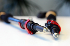 Die Griffverlängerung besteht aus Schaumstoff, der einen hochwertigen Eindruck macht. Beim Material der Stöcke selbst hat sich der Hersteller für Carbon entschieden. Eine gute Wahl, schließlich überzeugt der Stoff in der Theorie durch ein niedriges Gewicht und eine hohe Stabilität. Den ersten Punkt können wir bestätigen. Jeder Wanderstock bringt gerade einmal knapp 220 Gramm auf die Waage. Damit sind die Steinwood zwar nicht die leichtesten auf dem Markt, aber auch bei längeren Trips belasten sie das Gepäck nur minimal. Unseren Belastungstests halten die Wanderstöcke ebenfalls stand, zwar ist ein deutliches Knacken zu hören, sie brechen aber nicht. Ganz ausschließen können wir jedoch nicht, dass die Stöcke doch einmal brechen.