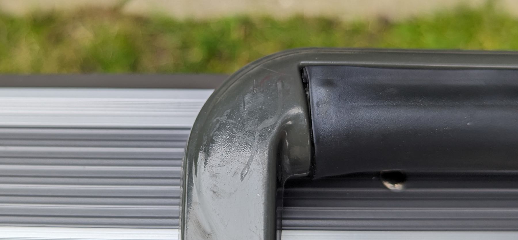 In unserem Test sticht besonders das Aluminium, aus dem der Koffer gefertigt ist, hervor. Selbst unter Krafteinsatz zeigt es sich als widerstandsfähig, da es sich weder eindrücken noch verbiegen lässt – sehr gut.