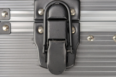Der Kunststoff-Griff überzeugt uns ebenfalls durch seine Stabilität. Die gleichmäßige und präzise Verarbeitung der Spaltmaße deutet auf eine sorgfältige Fertigung hin. Ebenfalls hervorzuheben sind die Verschlüsse aus Aluminium, die den Koffer fest und eng zusammenhalten und somit eine sichere Aufbewahrung des Werkzeugs gewährleisten.