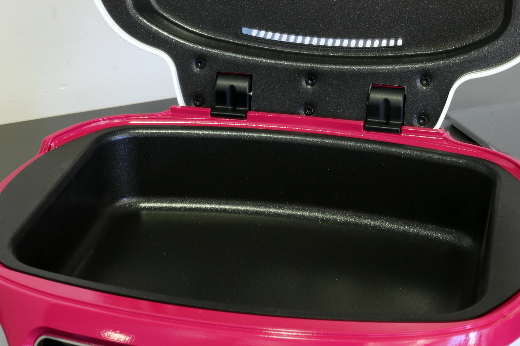 In Kombination mit den präzise reagierenden Tasten und dem kleinen alphanumerischen Digitaldisplay, geht die Bedienung sehr einfach von der Hand und ist fast selbsterklärend. Einzig die fünf Symbole für die Automatikprogramme sind nicht ganz eindeutig. Hier hilft jedoch die ausführliche Bedienungsanleitung weiter. Im Lieferumfang befinden sich eine Aluminiumbackform und zwei Silikonformen für je sechs Muffins und Minikuchen. Zum Einsetzen einfach den leichtgängigen Deckel über die beiden Griffe nach oben klappen. Die Einlagen passen perfekt in die Cake Factory und haben noch etwas Spiel – optimal.