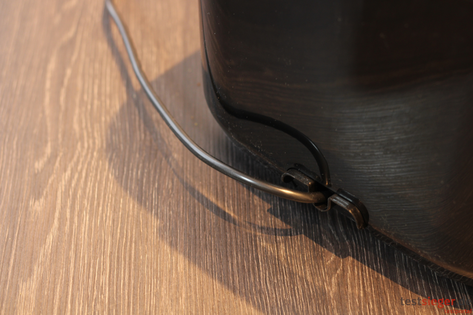 Das Gehäuse besteht nahezu komplett aus Kunststoff. Auch die durchsichtige Ofentür ist aus Plastik gefertigt und nicht aus Glas. Die Seitenwände sind sehr dünn und lassen sich leicht eindrücken. Dementsprechend macht das Gerät auf uns nicht den hochwertigsten Eindruck. Dieser Eindruck verstärkt sich durch unsaubere, teils sehr raue Kanten an den Verbindungsstellen der einzelnen Komponenten. Die Ofentür schließt aber sauber mit dem restlichen Gehäuse ab und es tritt keine Wärme aus. Die Standfestigkeit ist gut, Antirutschelemente sorgen für einen fest Halt auf dem Untergrund.
