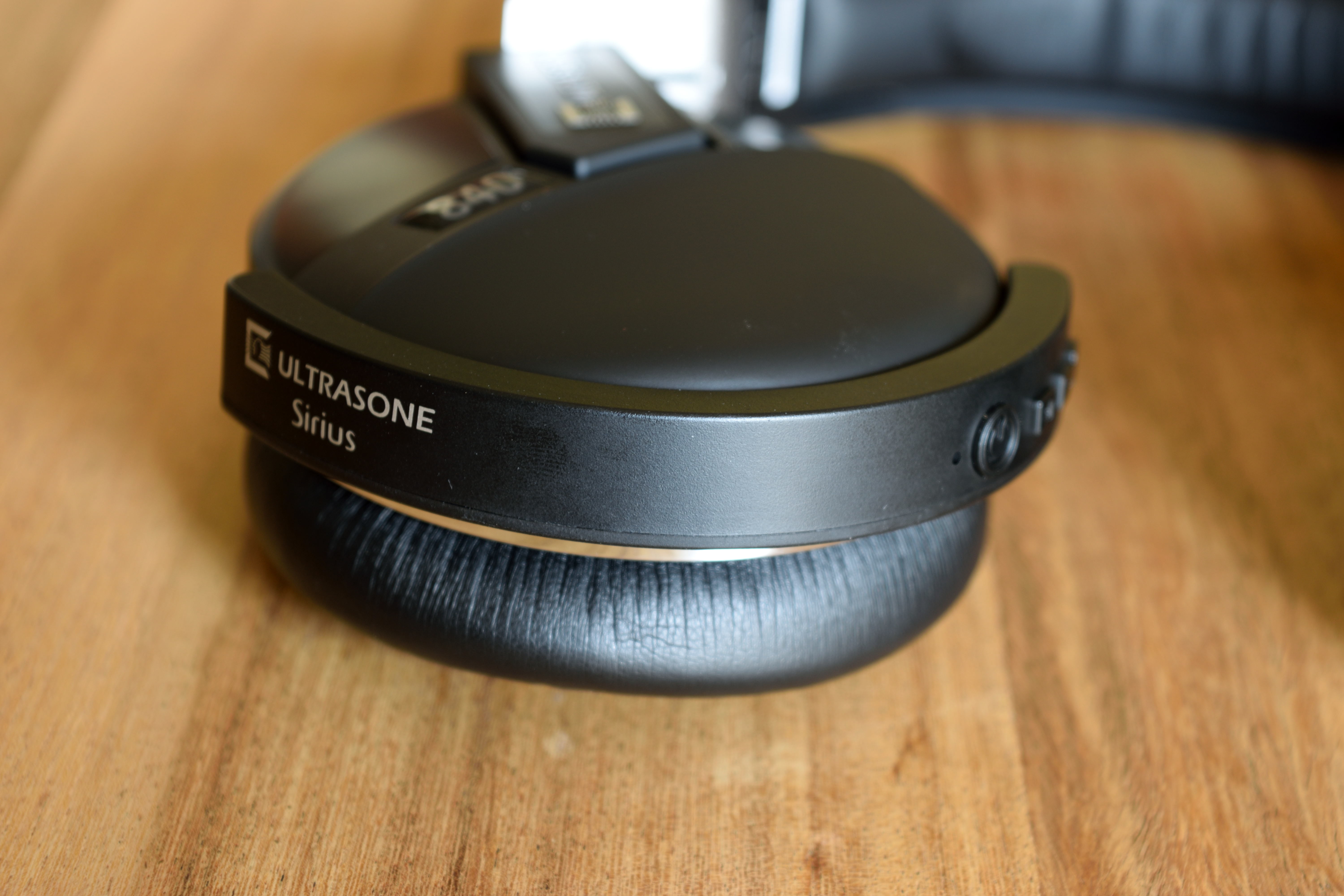 Mit metallischen Highlights und einer segmentierten Oberfläche wirken die an sich großen, einklappbaren Ohrenschalen nicht klobig. Ultrasone verwendet fast ausschließlich Kunststoff, Haptik und Verarbeitungsqualität gehen aber in Ordnung. Der Metallkern des Bügels ist robust und an beiden Seiten in acht Stufen verstellbar. An der Oberseite prangt als nettes optisches Gimmick der Ultrasone-Schriftzug.