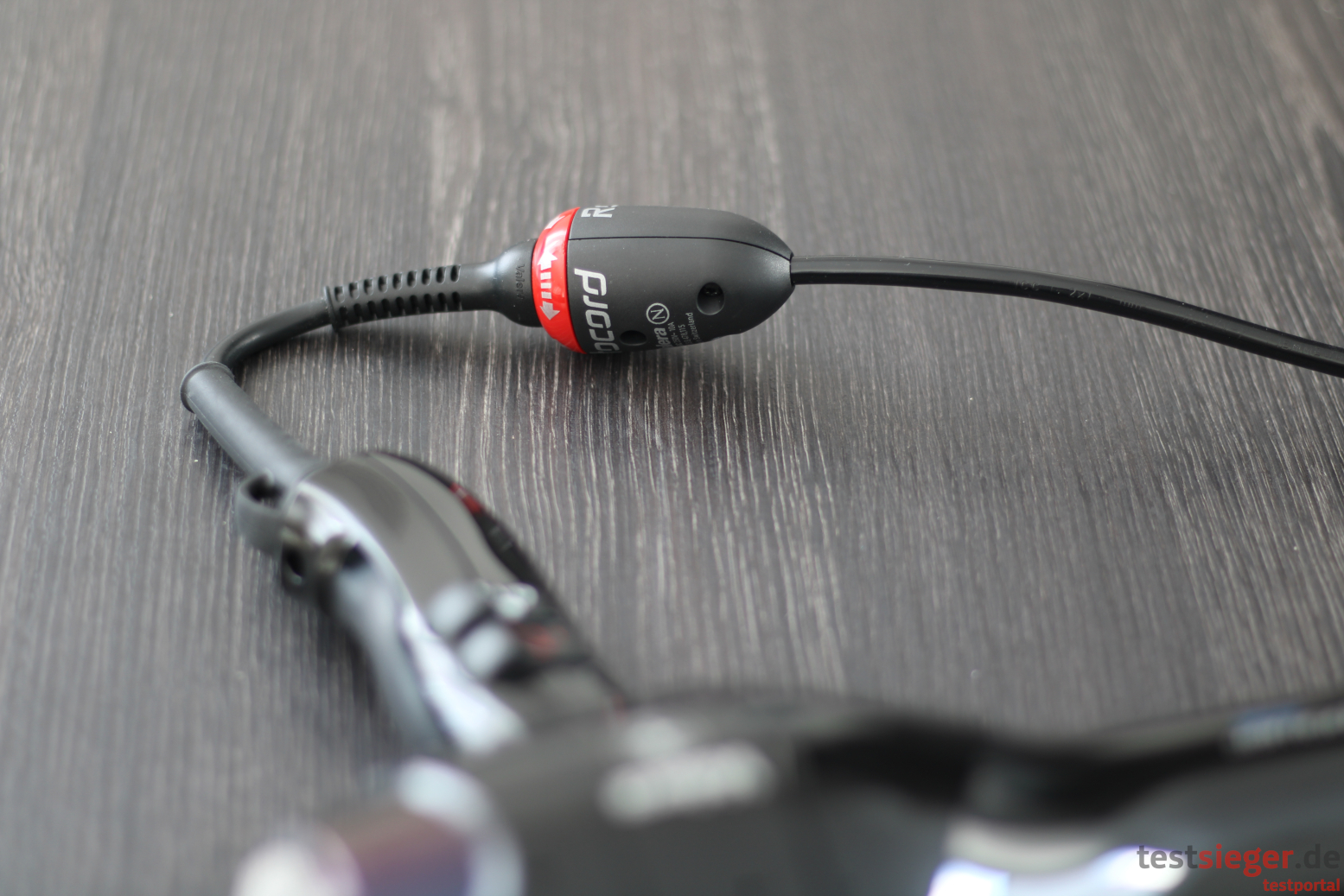 Die Verarbeitungsqualität gibt ebenfalls nur wenig Anlass zur Kritik. Einzig die recht großen Spaltmaße an den Verbindungsstellen der einzelnen Komponenten hätten gerne etwas kleiner ausfallen dürfen. So lagert sich hier schnell Staub ab, wenn der Föhn über einen längeren Zeitraum offen im Bad liegt. Da Haartrockner nach der Verwendung jedoch in der Regel im Schrank Platz finden, fällt dieser Punkt nur geringfügig ins Gewicht. Der verwendete Kunststoff ist robust und lässt sich selbst unter starkem Kraftaufwand nicht eindrücken oder gar verbiegen. Unsere Falltests aus 1,5 Metern Höhe übersteht der Haartrockner unbeschadet.