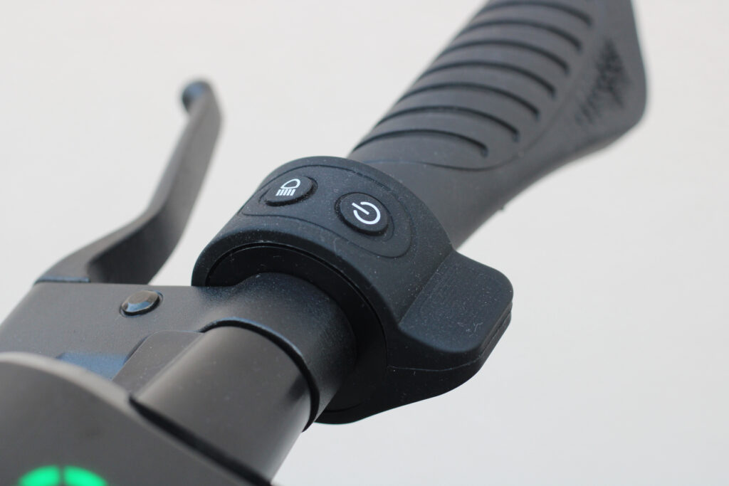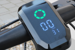 Auch die Bedienelemente am Lenker können überzeugen. Der Daumenhebel zum Gasgeben ist gummiert, um ein Abrutschen zu verhindern. Die Tasten zum Ein- und Ausschalten sowie für das LED-Licht vorn und hinten haben einen angenehmen Druckpunkt und funktionieren problemlos. In der Mitte des Lenkers sitzt das Display, auf dem sich während der Fahrt die wichtigsten Fakten ablesen lassen. Es fügt sich ideal ins Design ein und passt gut ins Gesamtbild.