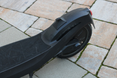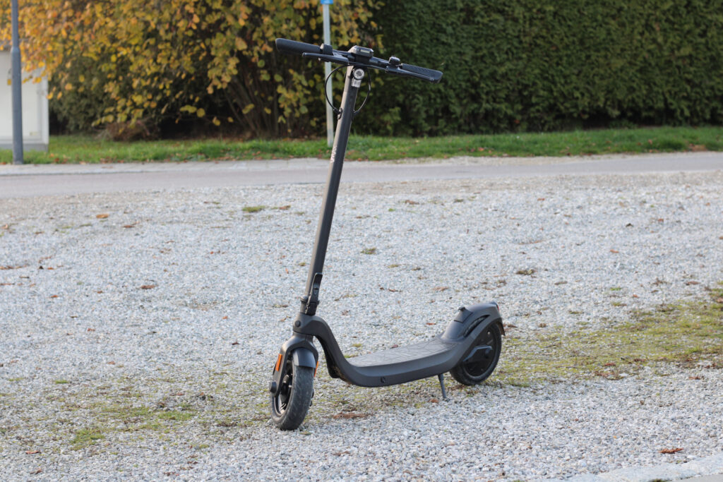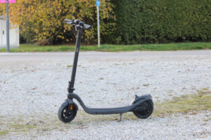 Auch herunter kommen wir von den Bergen problemlos, denn die Bremsen reagieren zuverlässig und ohne Aufbäumen des E-Scooters oder ähnliche Zickereien. Die elektrische Bremse, die Nutzerinnen und Nutzer über den rechten Bremshebel bedienen, verringert aber lediglich etwas die Geschwindigkeit. Bei schnellerer Fahrt oder Steigungen bringt nur die Trommelbremse den E-Scootern zum Stehen.