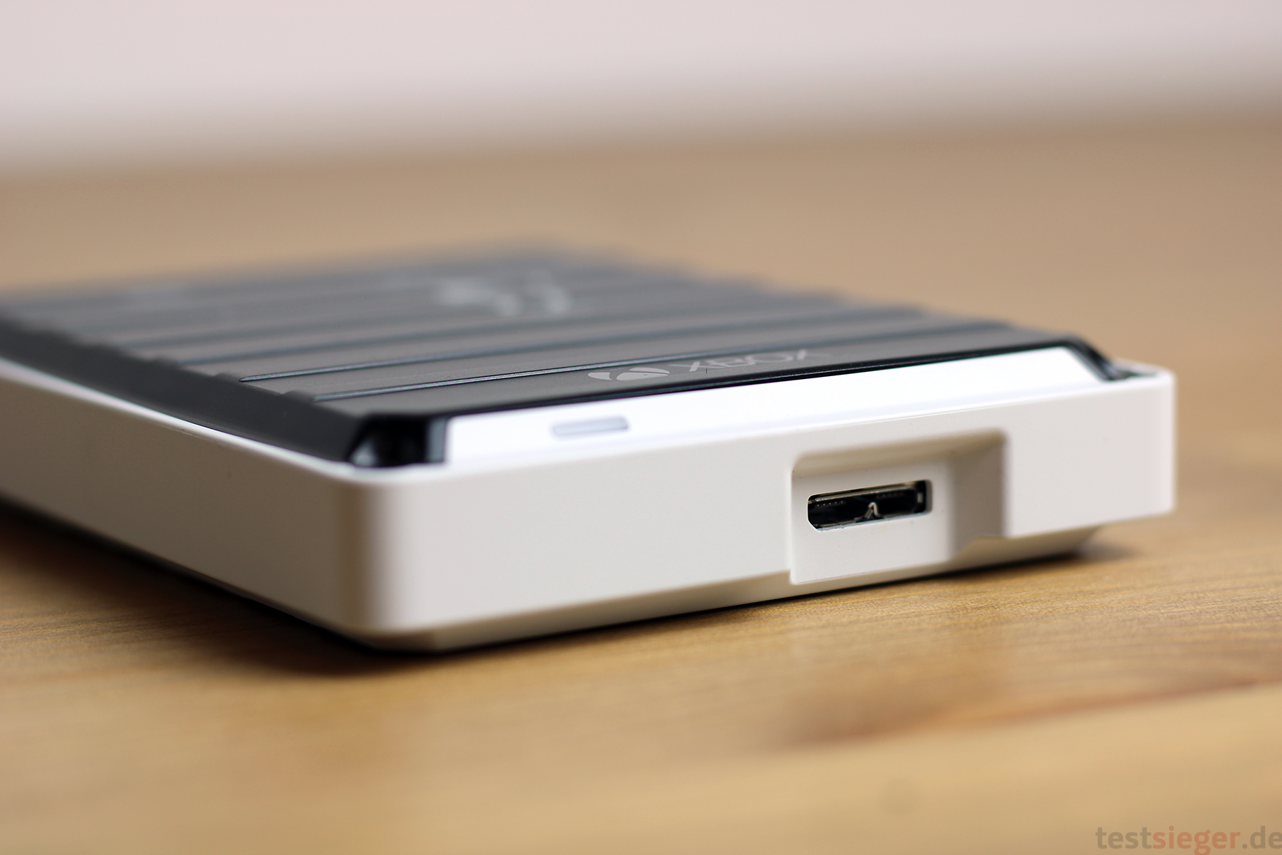 Die Verbindung mit der Xbox One geht in der Praxis gut von der Hand. Hier muss der Nutzer die HDD noch über das jeweilige Einstellungsmenü als externen Datenträger festlegen beziehungsweise formatieren. Aber natürlich lässt sich die P10 auch als Speichermedium am Computer verwenden. Unser Windows-10-Rechner erkennt die Platte sofort und die Installation ist in wenigen Sekunden automatisch abgeschlossen. Da es sich um eine 2,5-Zoll-Festplatte handelt, wird keine externe Stromquelle benötigt. Die Energie kommt vom PC-System oder der Konsole und wird über den USB-Anschluss zur Festplatte übertragen. Daher muss der Käufer nur das mitgelieferte USB-Kabel verbinden und der Computer erkennt das Laufwerk automatisch. Dann beginnt die weiße Status-LED, in der rechten oberen Ecke zu leuchten.