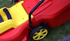 Die vier Reifen sind sehr leichtgängig und damit die Grundlage für eine komfortable Handhabung. Allerdings rollen sie in unserem Test nicht immer gleichmäßig, was aber keinen Einfluss auf die Beweglichkeit hat. Der Haltegriff ist im Vergleich zu anderen Rasenmähern von Wolf Garten nicht gepolstert. Dadurch ist der Dauerbetrieb nicht ganz so angenehm, wirklich störend ist es aber auch nicht. Zumal der A 302 E sowieso nur für kleinere Gärten oder kürzere Mäheinheiten ausgelegt ist. Einschalten lässt sich der Wolf Garten über die gängige Kombination aus Startknopf und Sicherheitsbügel. Die Komponenten müssen gleichzeitig gehalten werden, damit der Motor startet. Sobald der Bügel wieder losgelassen wird, stoppt das Gerät, womit eine optimale Sicherheit gewährleistet ist.