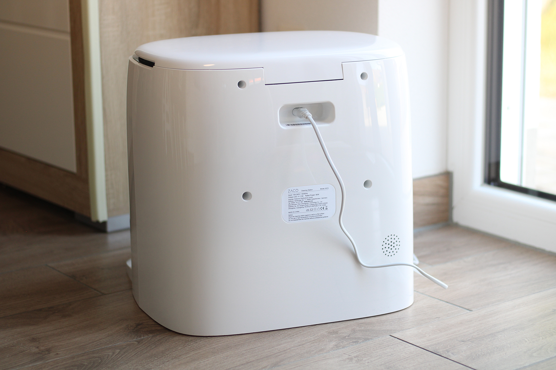 Mit einer Höhe von 9,5 Zentimetern gehört der M1S zu den flacheren Staubsauger-Robotern und kommt noch gut unter etwas höher gebaute Couchtische. In puncto Design sind der Roboter und die selbstreinigende Ladestation perfekt aufeinander abgestimmt. Bei der Farbgebung entscheidet sich ZACO für Weiß mit Klavierlackfinish, wodurch sich der M1S durch einen edlen, cleanen Look auszeichnet. Aus unserer Sicht dürfte sich der ZACO in vielen Wohnumgebungen wohlfühlen. Das ist auch gut so, denn verstecken kann man ihn nicht. Die Ladestation misst beachtliche 39,5 Zentimeter in der Breite, 39 Zentimeter in der Höhe und 43,5 Zentimeter in der Tiefe. Auch das Gewicht ist mit knapp 8,5 Kilogramm nicht zu unterschätzen. Gerade wenn der 4-Liter-Wassertank befüllt ist, ist das Tragen keine Selbstverständlichkeit mehr. Das Gewicht des Saugroboters ist mit knapp 4,5 Kilogramm ebenfalls nicht leicht. Die meisten Nutzerinnen und Nutzer sollten aber keine Probleme haben, ihn in die nächste Etage zu tragen.